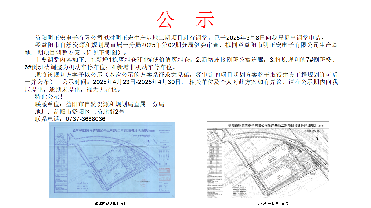 益阳明正宏电子有限公司生产基地二期项目规划调整公示