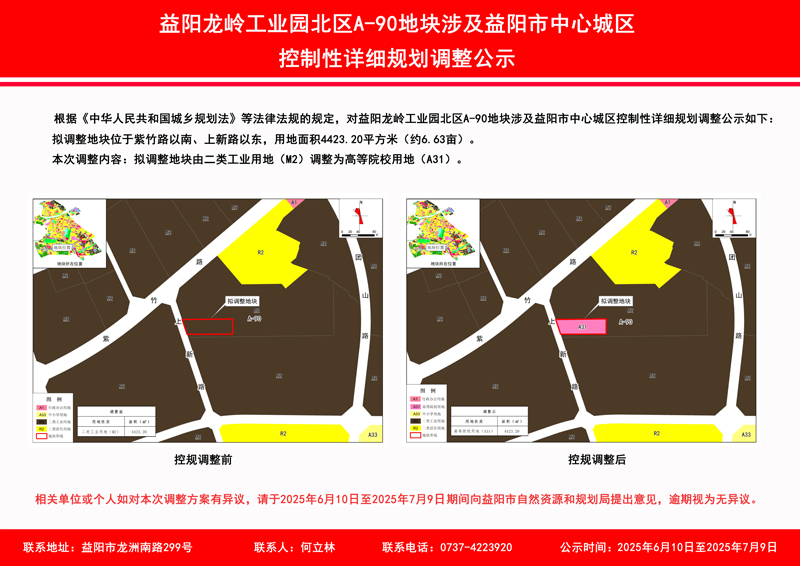 益阳龙岭工业园北区A-90地块涉及益阳市中心城区控制性详细规划调整公示