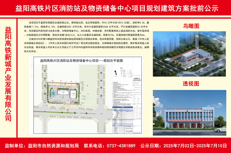 益阳高铁片区消防站及物资储备中心项目规划建筑设计方案批前公示