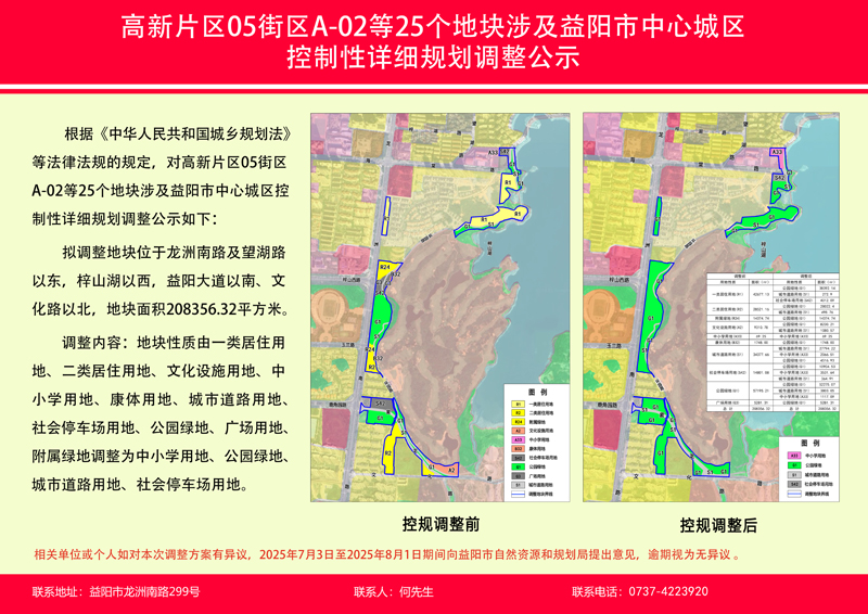 高新片区05街区A-02等25个地块涉及益阳市中心城区控制性详细规划调整公示