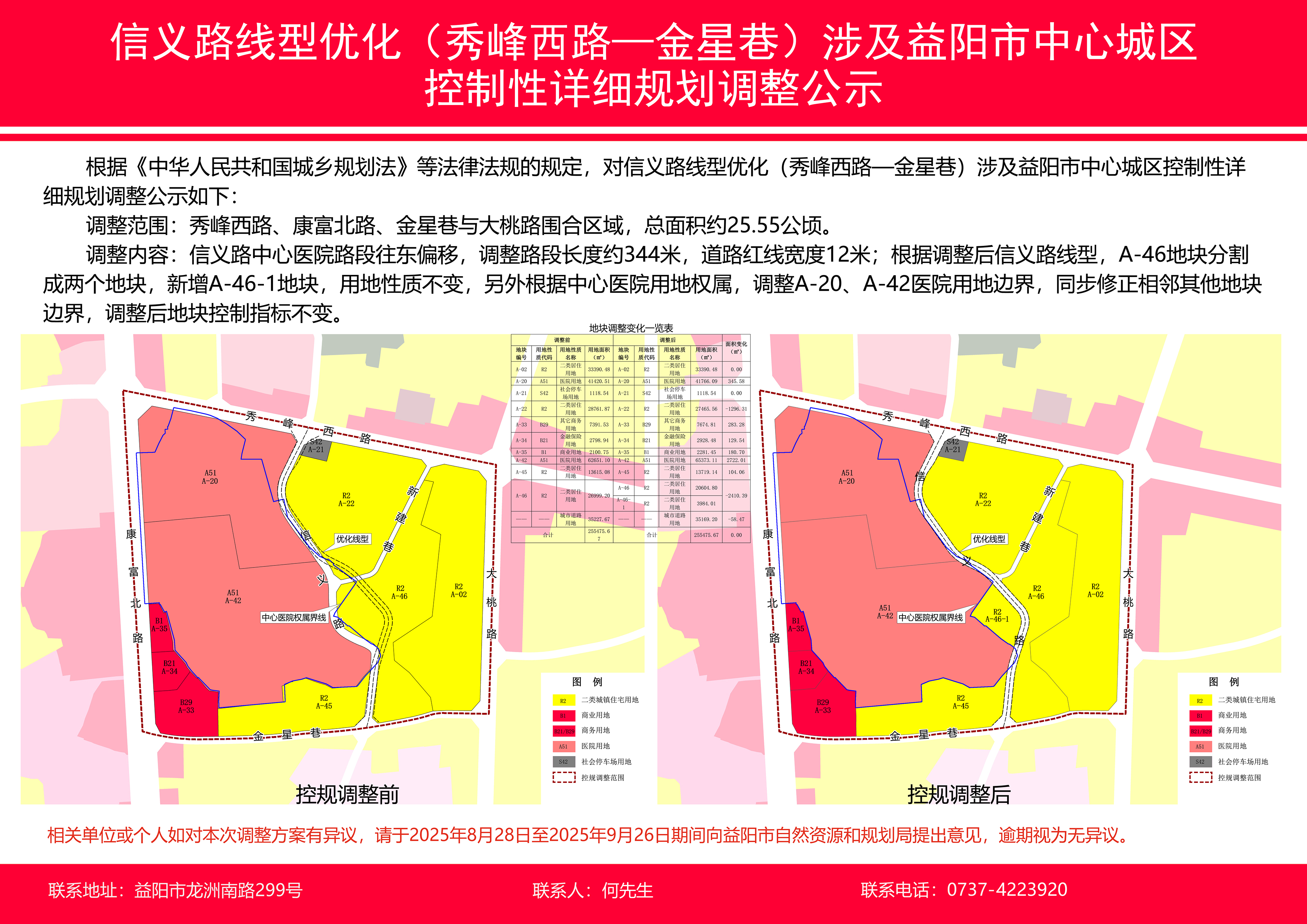 信义路线型优化(秀峰西路-金星巷)涉及益阳市中心城区控制性详细规划调整公示