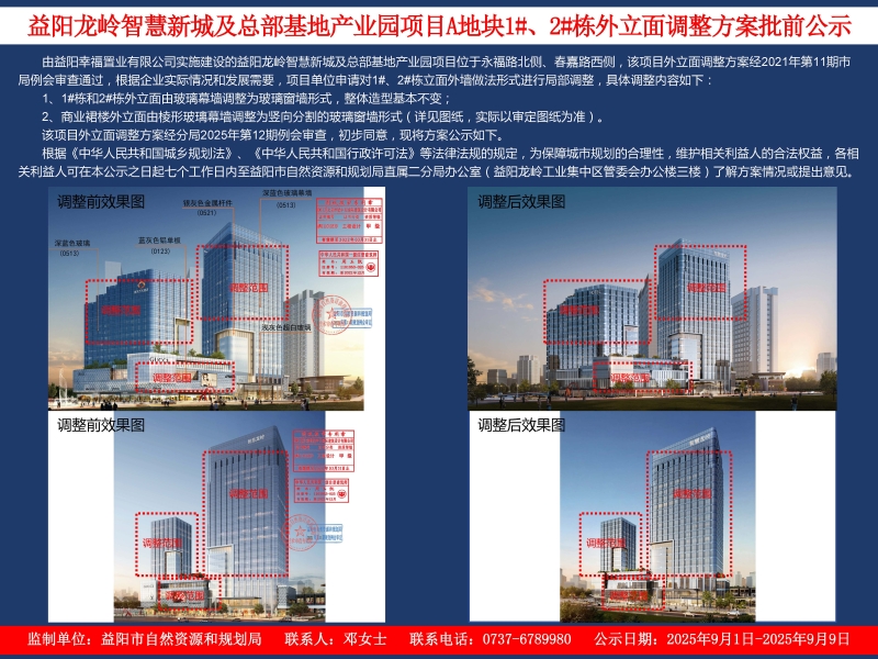 益阳龙岭智慧新城及总部基地产业园项目A地块1#、2#栋外立面调整方案批前公示