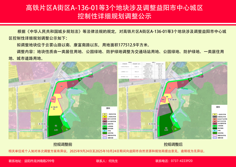 高铁片区A街区A-136-01等3个地块涉及调整益阳市中心城区控制性详细规划调整公示