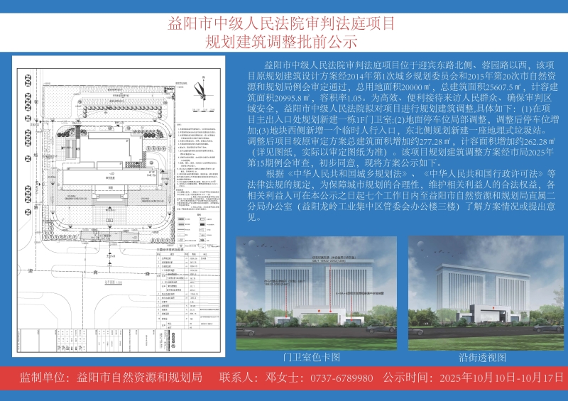 益阳市中级人民法院审判法庭项目规划建筑调整批前公示
