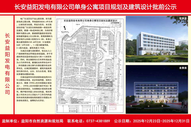 长安益阳发电有限公司单身公寓项目规划及建筑设计批前公示