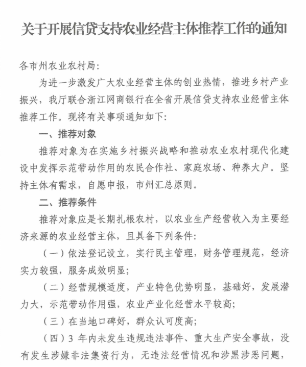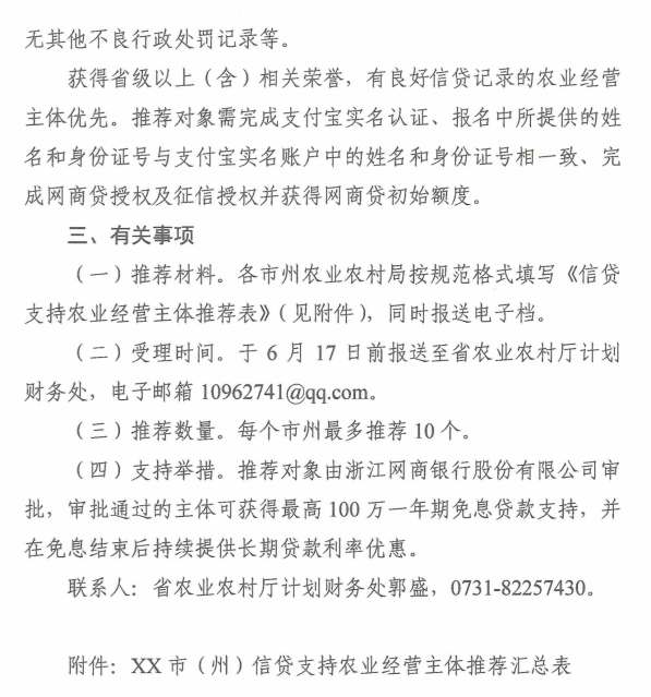 附件:湖南省农业农村厅《关于开展信贷支持农业经营主体推荐工作的通知》