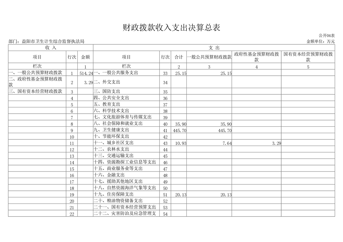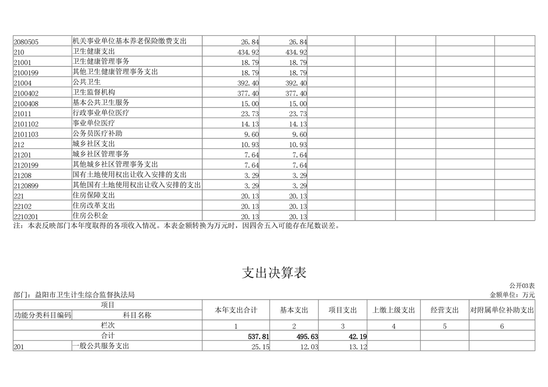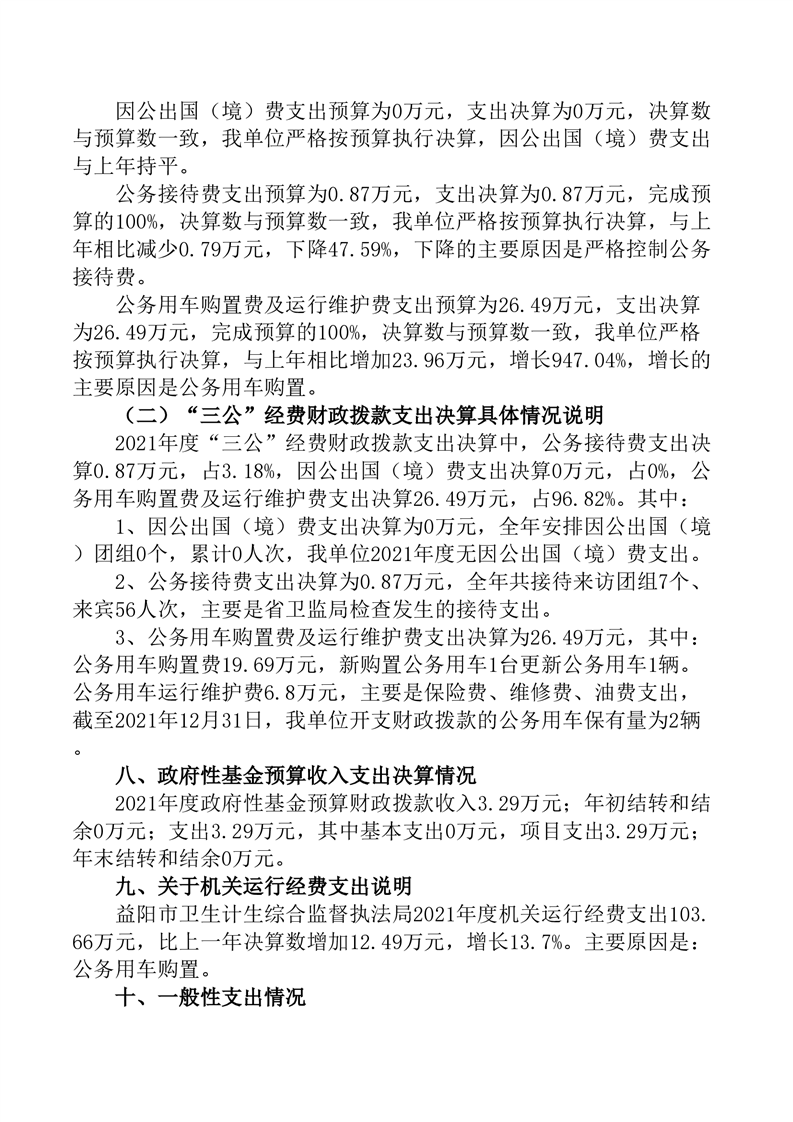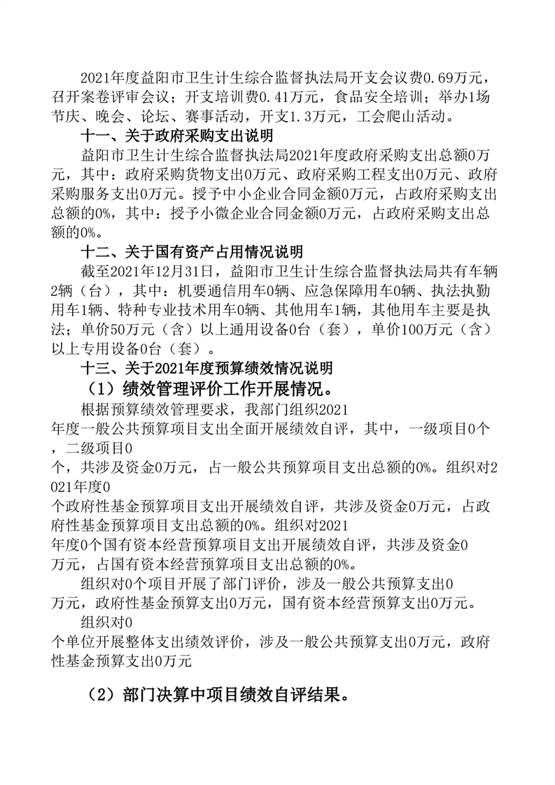 2021年度益阳市卫生计生综合监督执法局部门决算