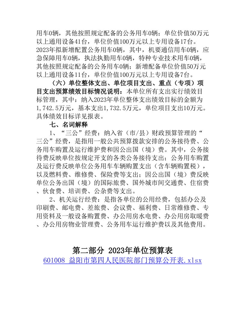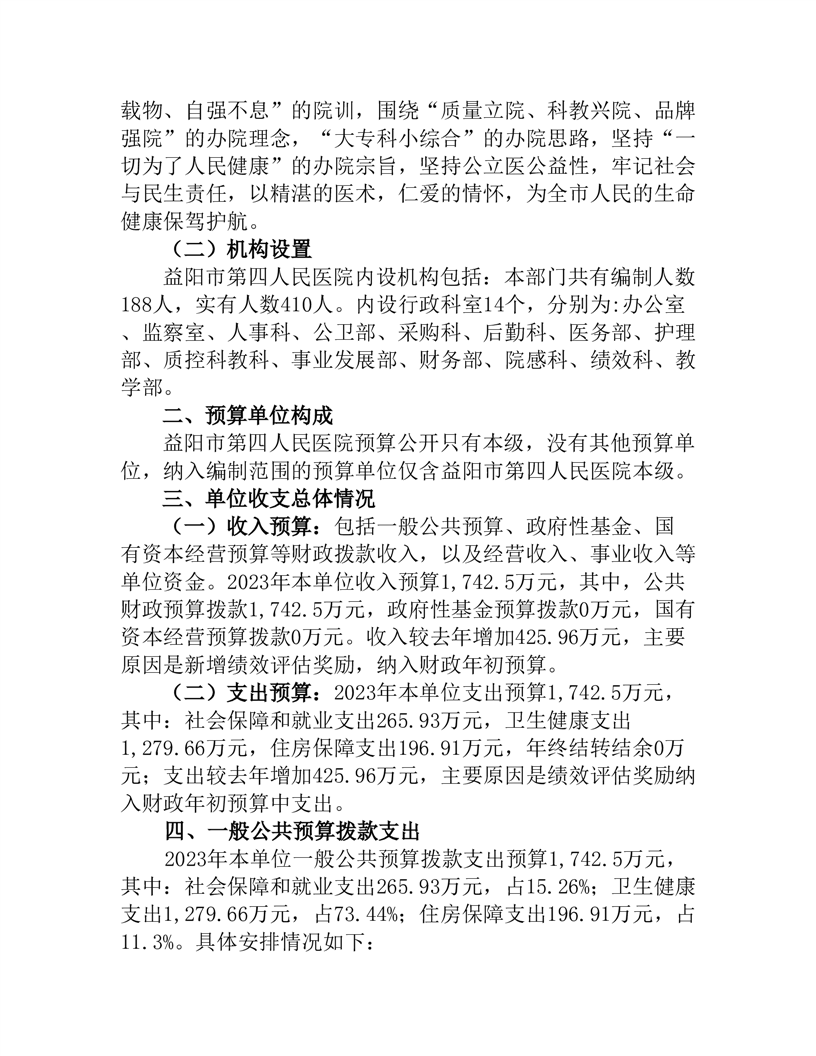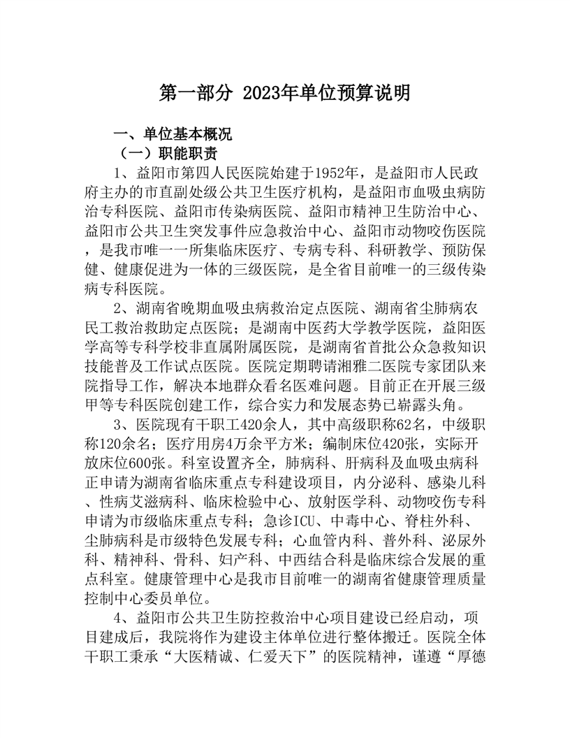 益阳市第四人民医院2023年部门预算公开说明