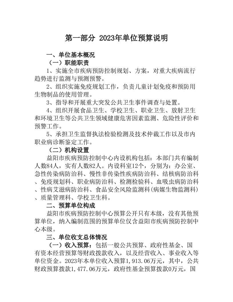益阳市疾病预防控制中心2023年部门预算公开说明