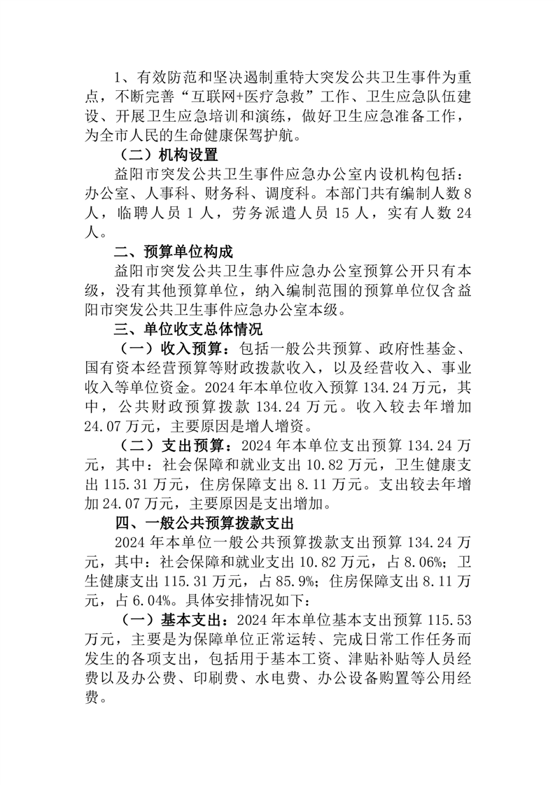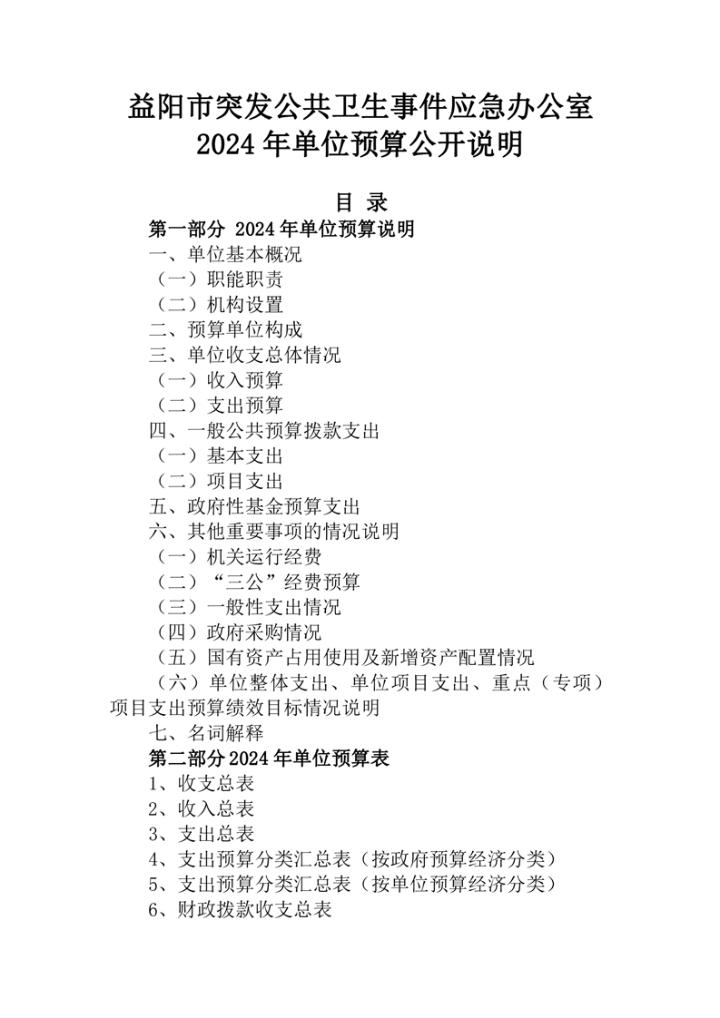 2024年度益阳市突发公共卫生事件应急办公室预算公开