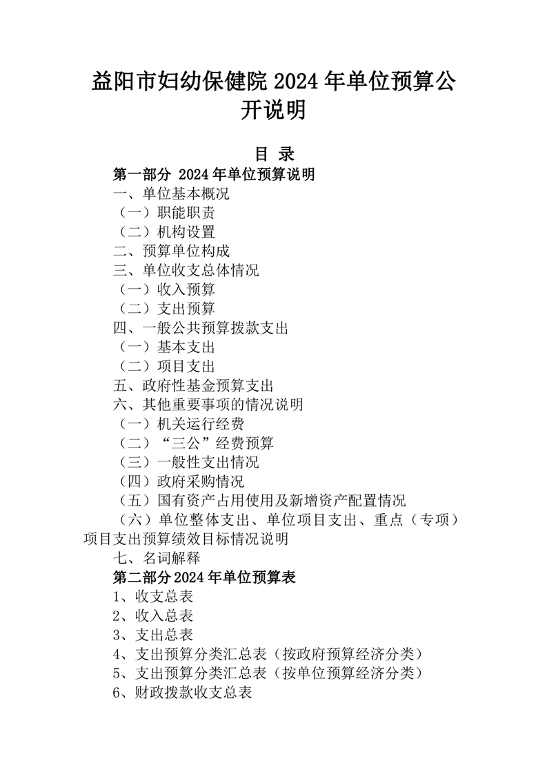 2024年度益阳市妇幼保健院预算公开
