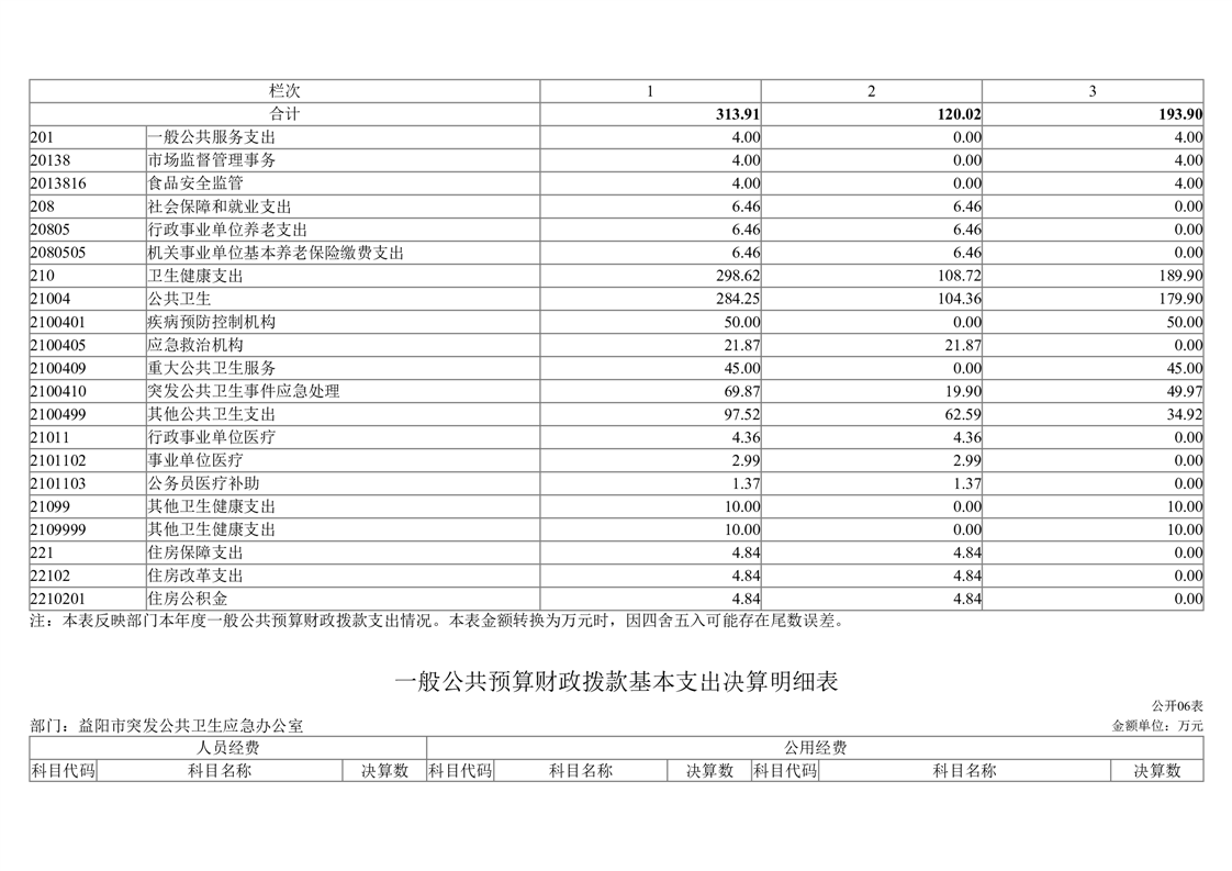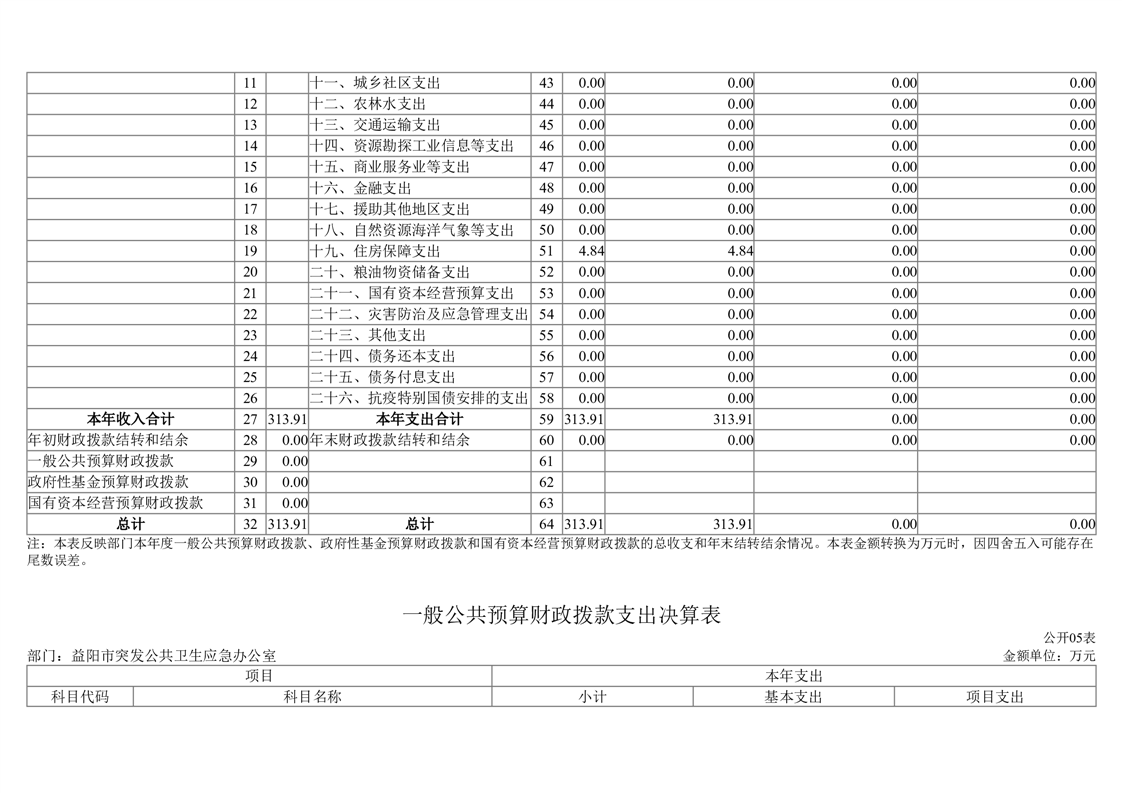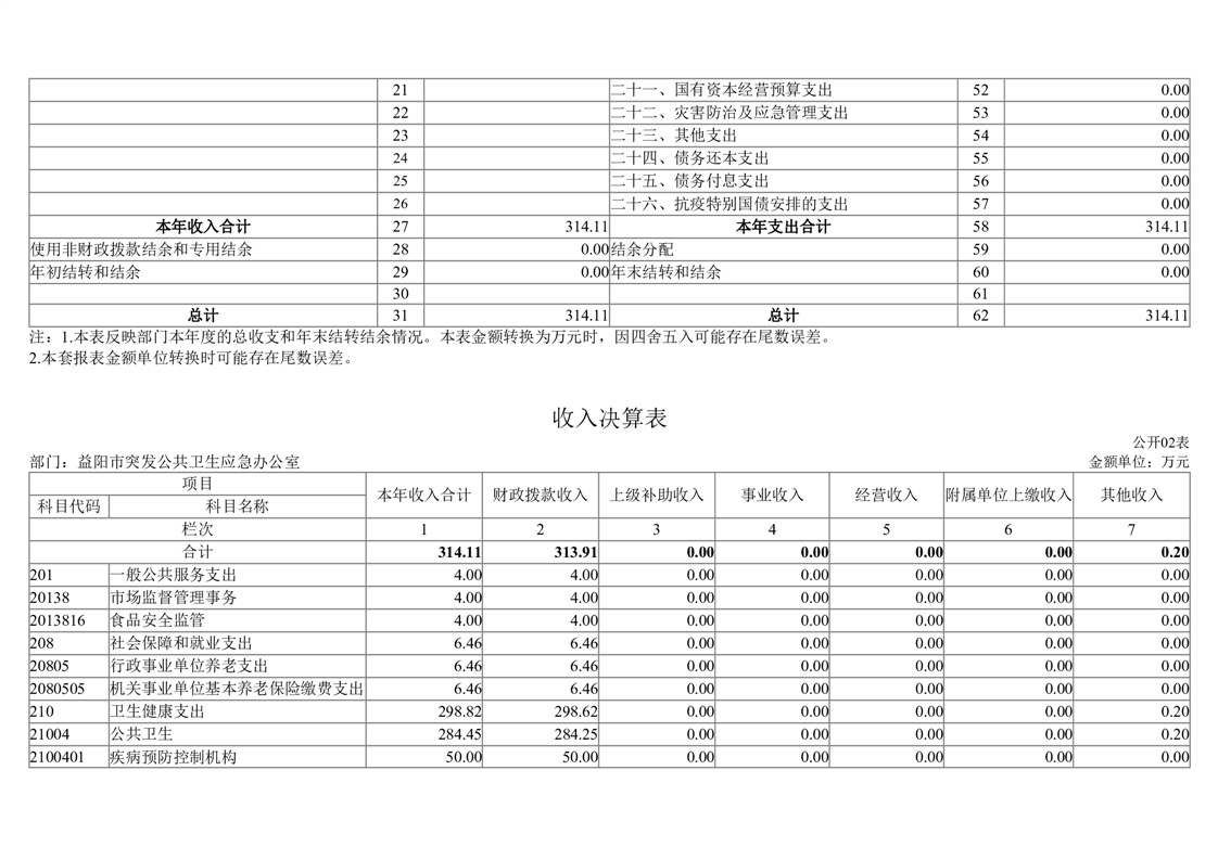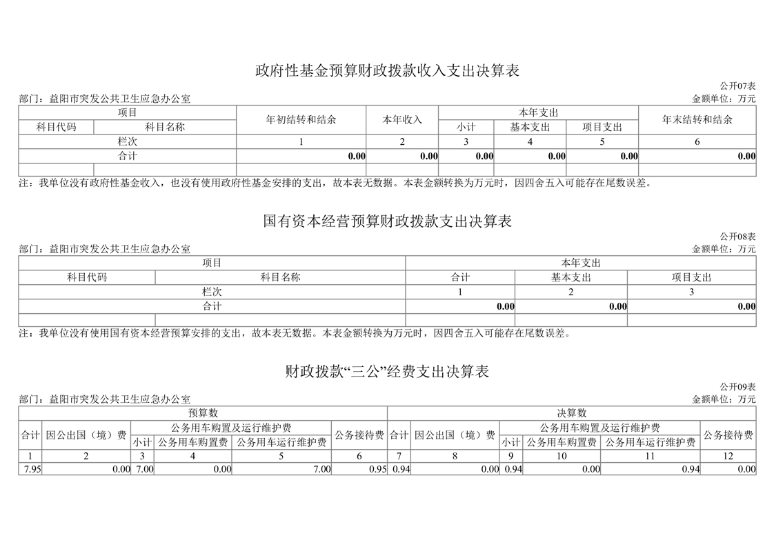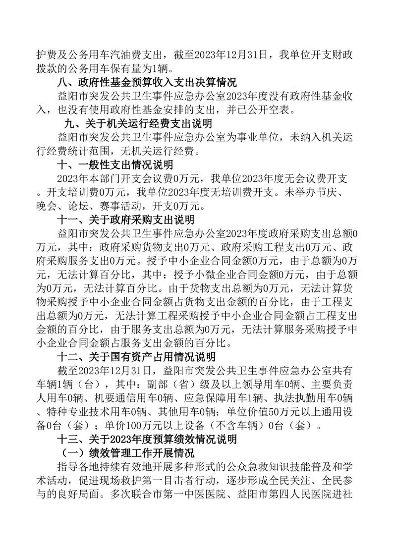 2023年度益阳市突发公共卫生事件应急办公室部门决算