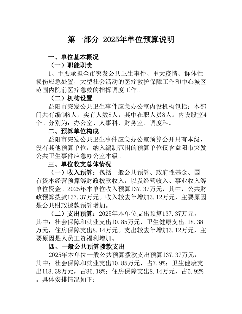 益阳市突发公共卫生应急事件办公室2025年单位预算公开说明