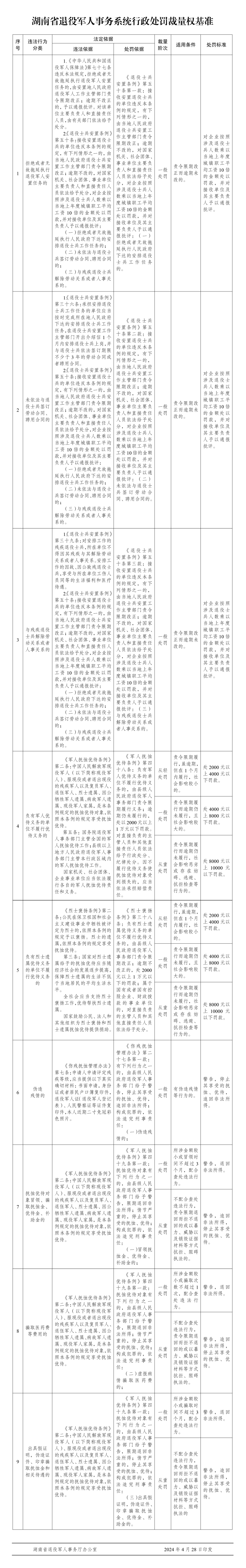 关于印发《湖南省退役军人事务系统行政处罚裁量权基准》的通知