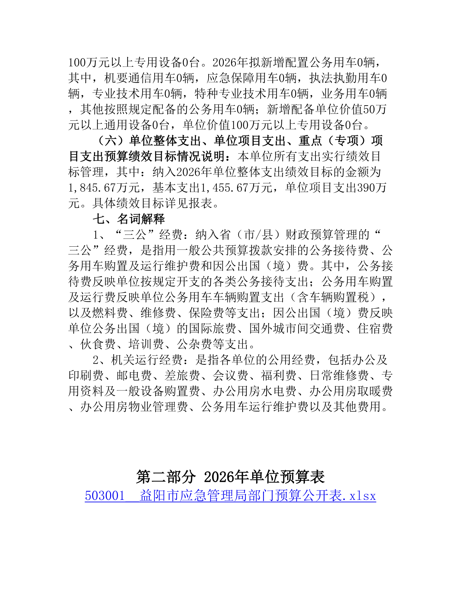 益阳市应急管理局本级2026年单位预算公开说明
