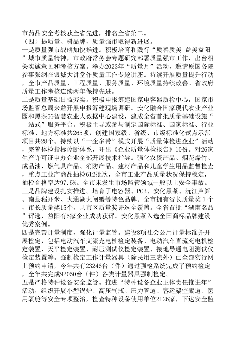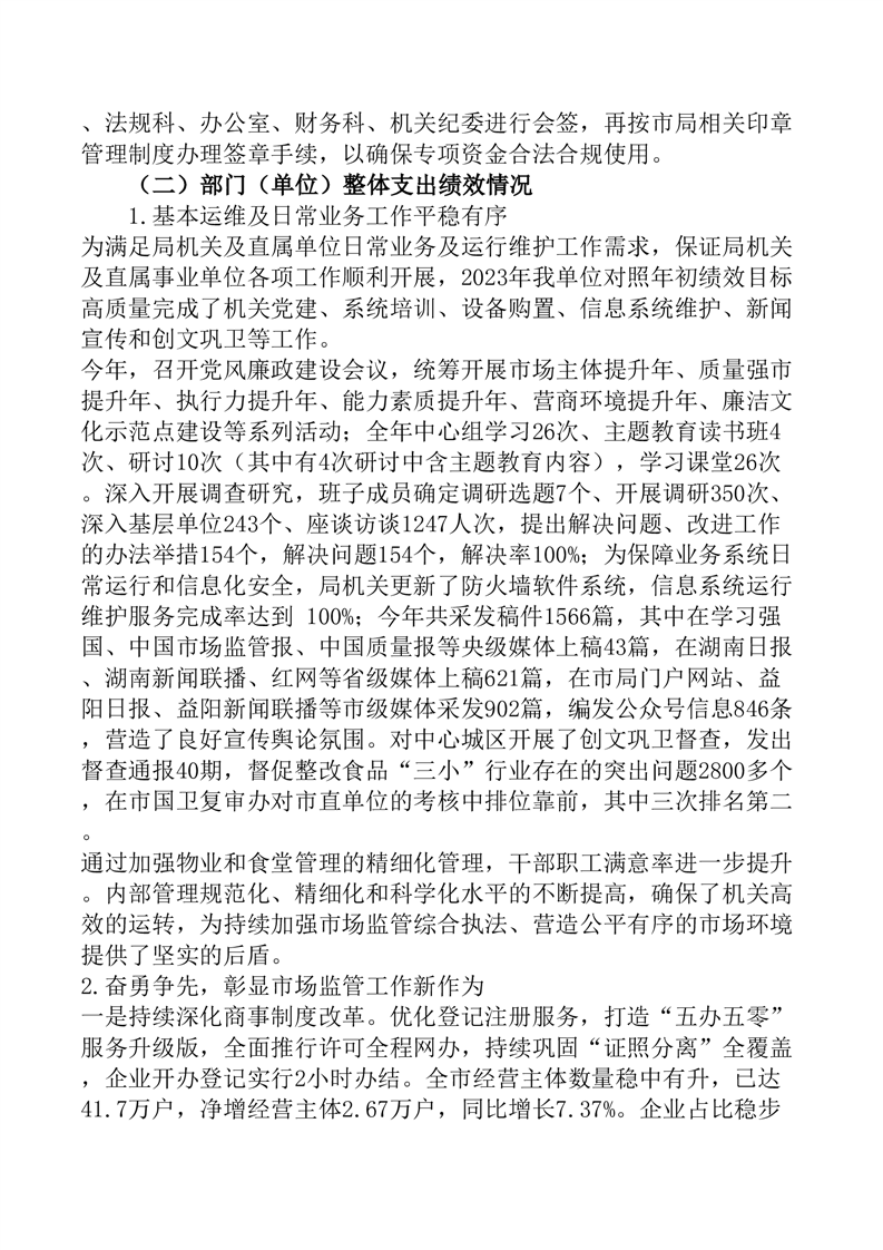 益阳市市场监督管理局整体绩效自评报告(2023年)(定).docx