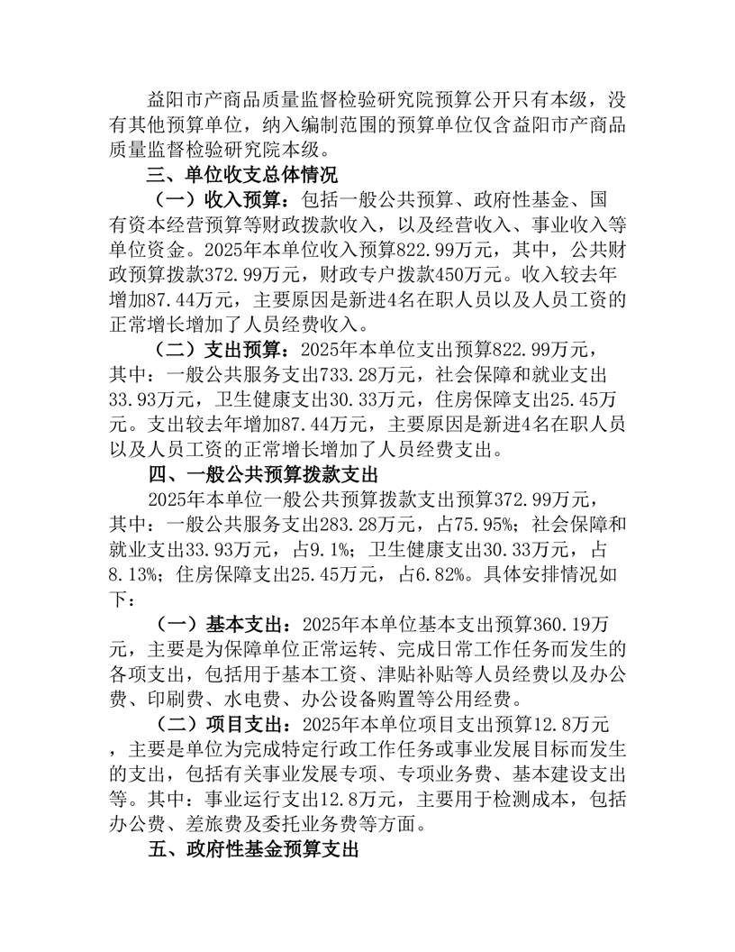 益阳市产商品质量监督检验研究院2025年部门预算公开说明
