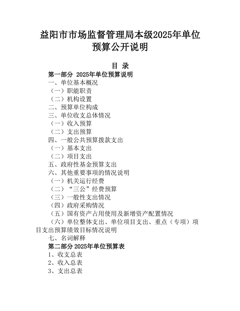 益阳市市场监督管理局本级2025年部门预算公开说明