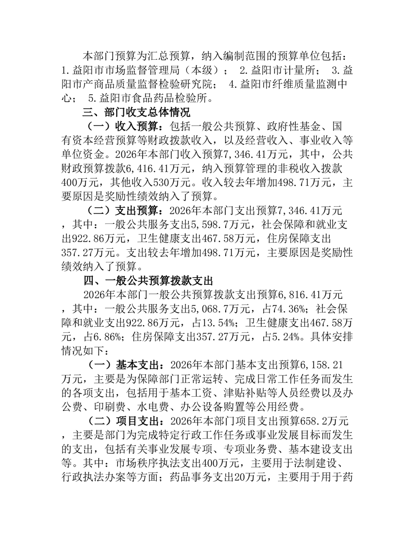 益阳市市场监督管理局2026年部门预算公开说明