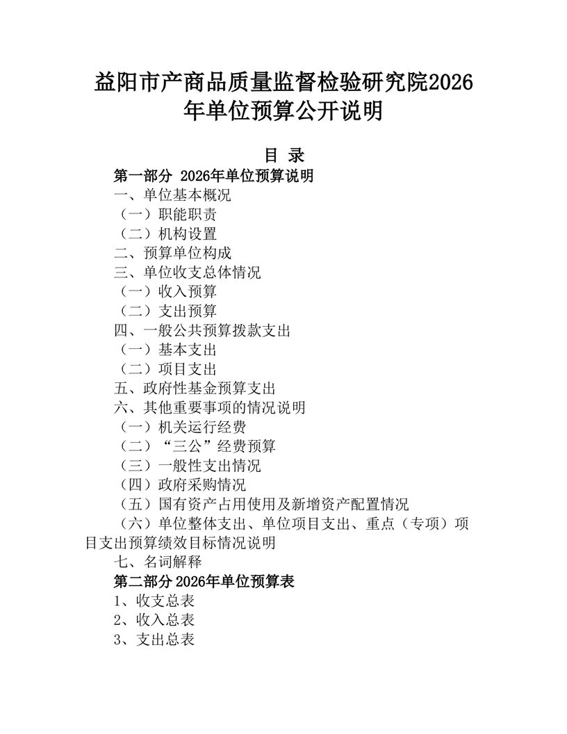 益阳市产商品质量监督检验研究院2026年单位预算公开说明