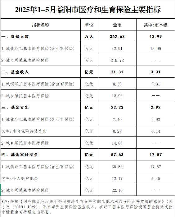 2025年1-5月益阳市医疗和生育保险主要指标