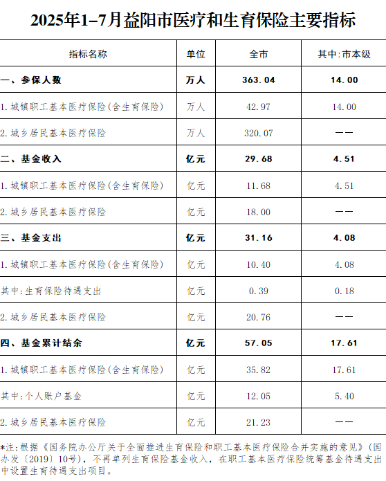 2025年1-7月益阳市医疗和生育保险主要指标