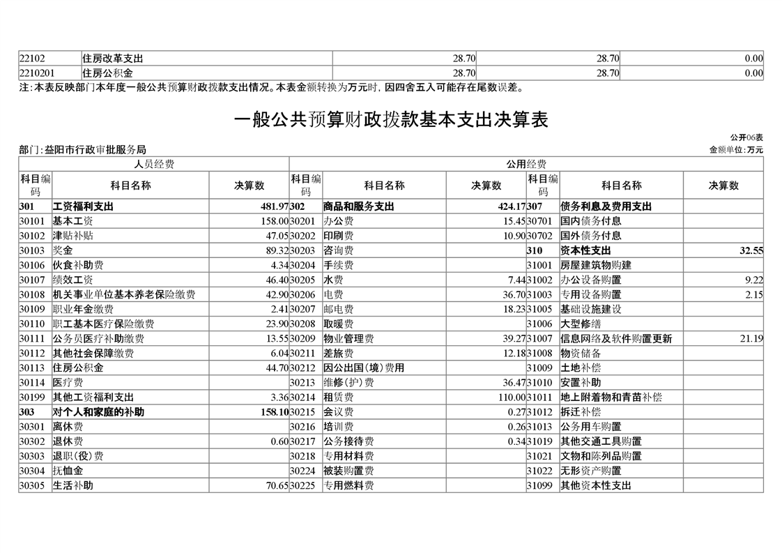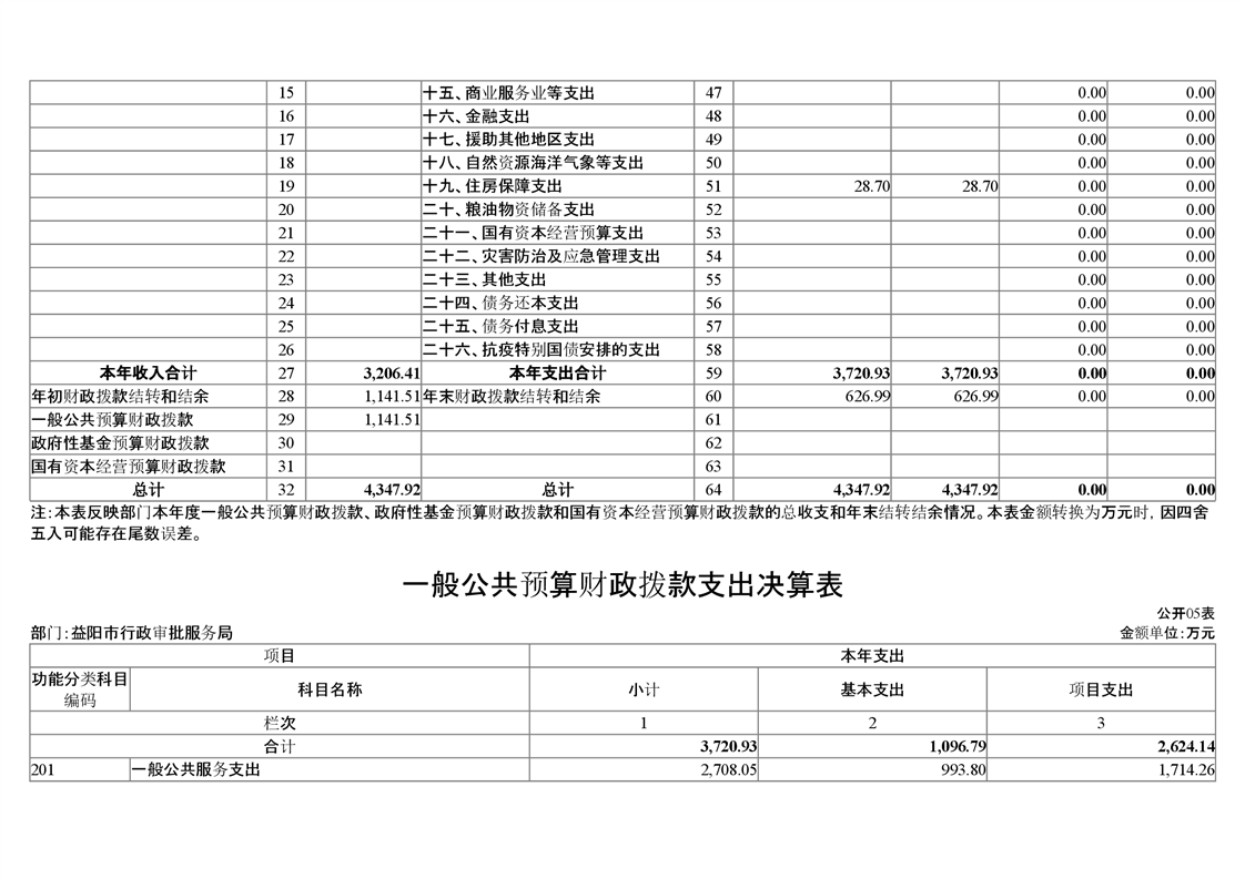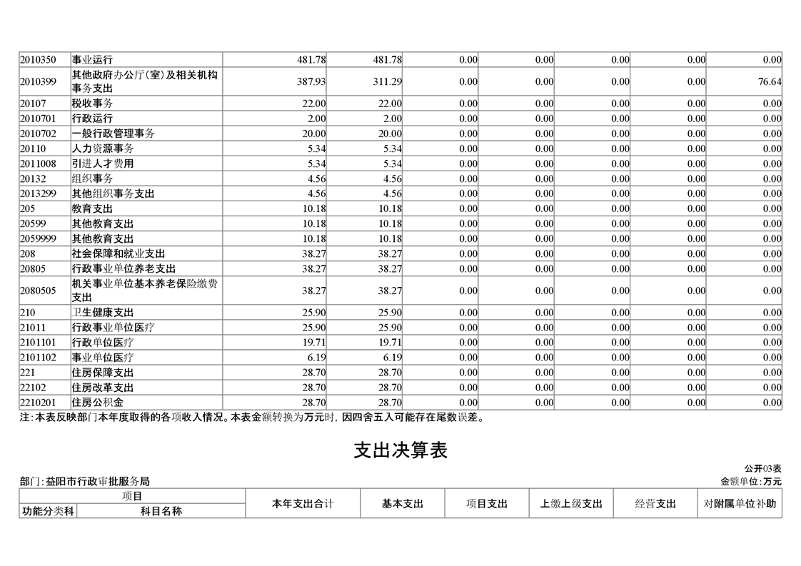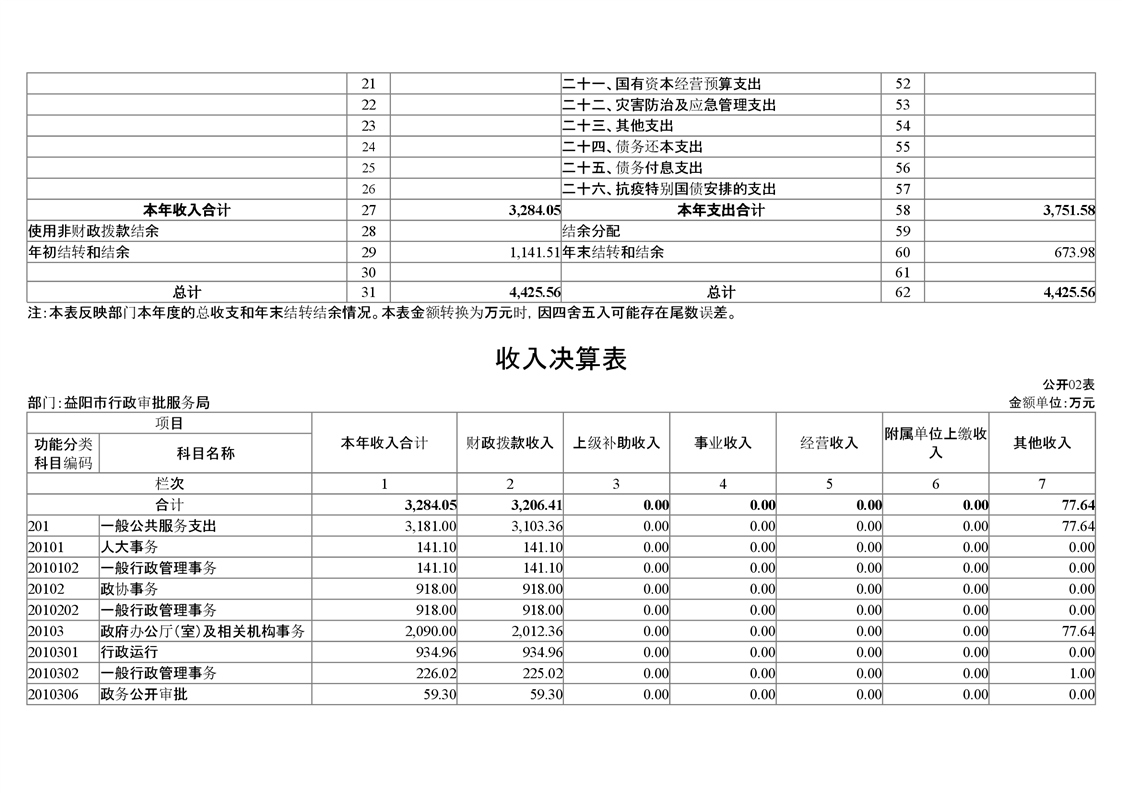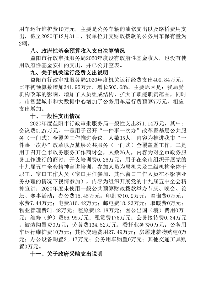 2020年度益阳市行政审批服务局部门(汇总)决算