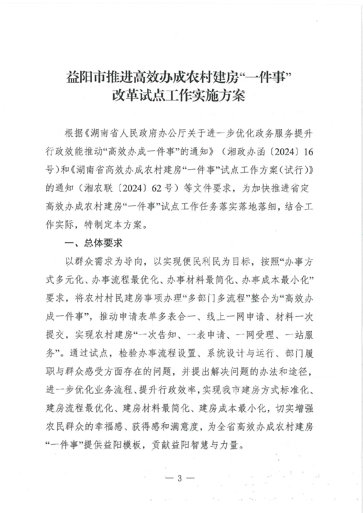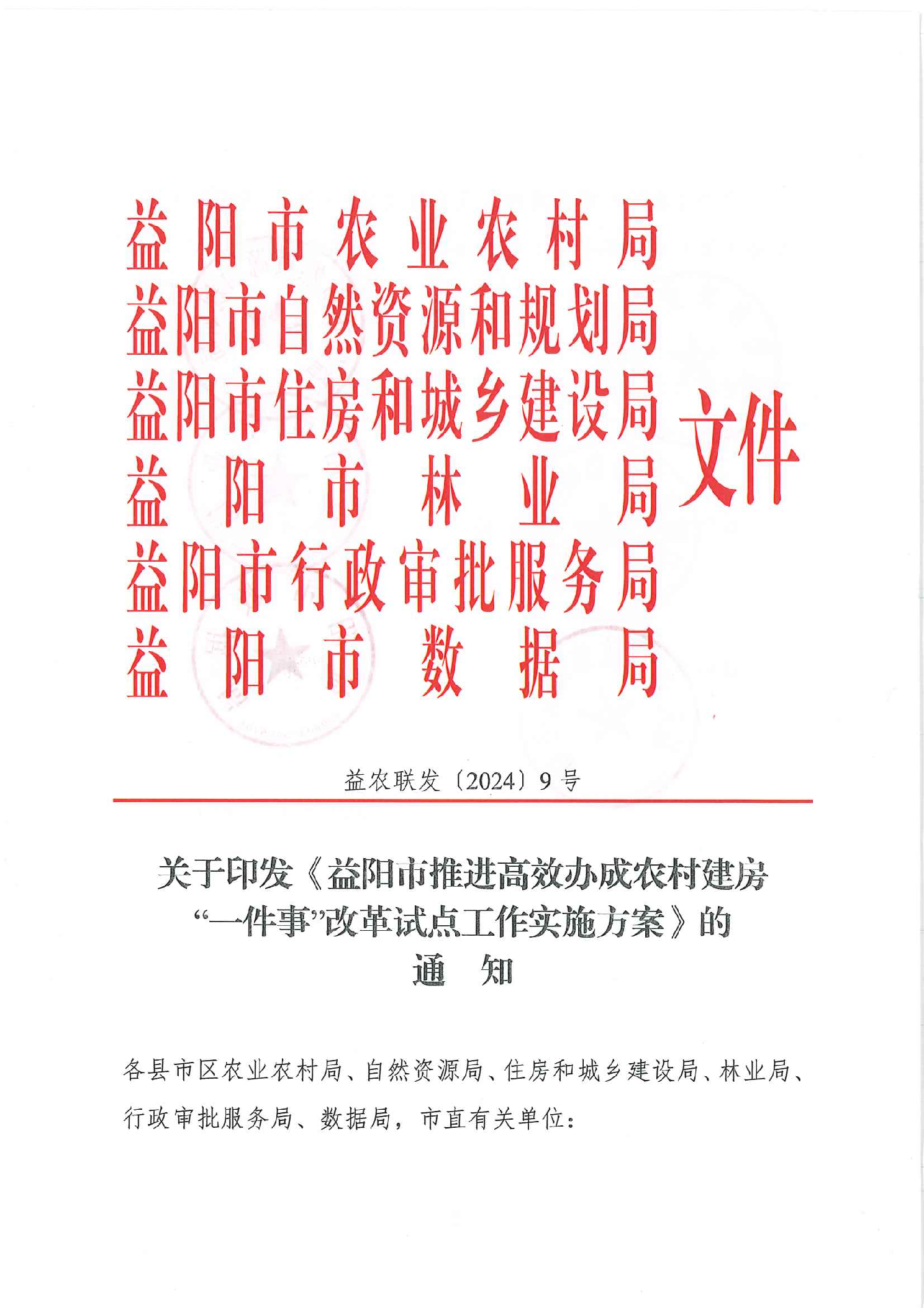 关于印发《益阳市推进高效办成农村建房“一件事”改革试点工作实施方案》的通知