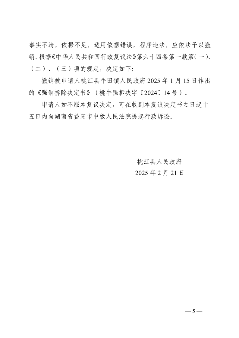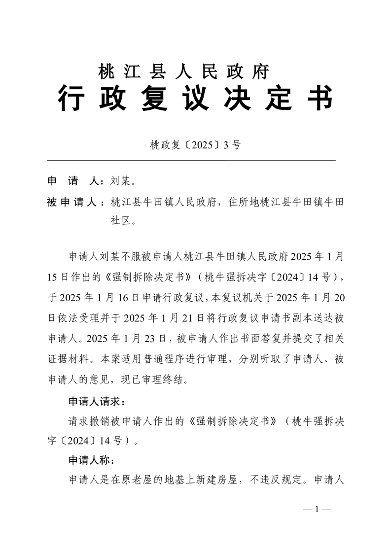行 政 复 议 决 定 书桃政复〔2025〕3号