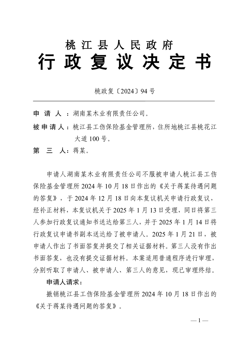 行 政 复 议 决 定 书桃政复〔2024〕94号