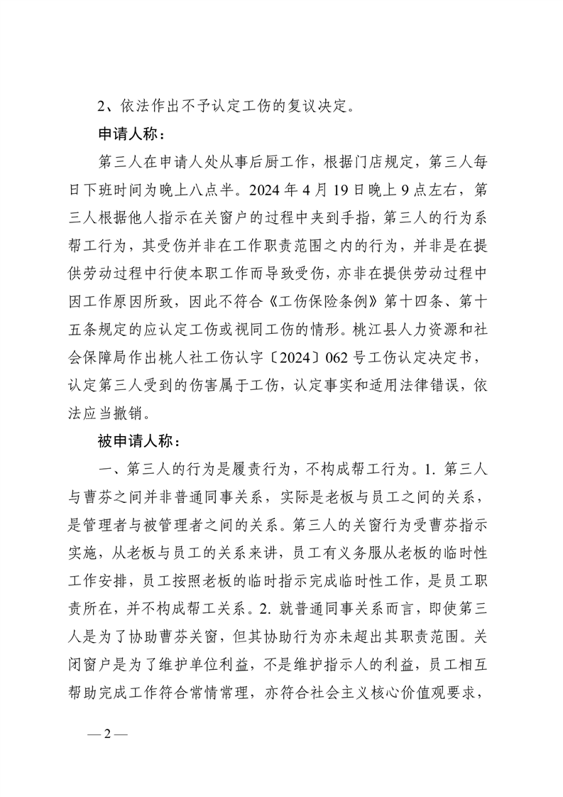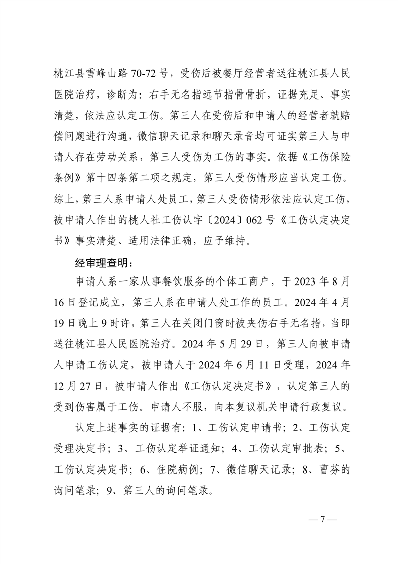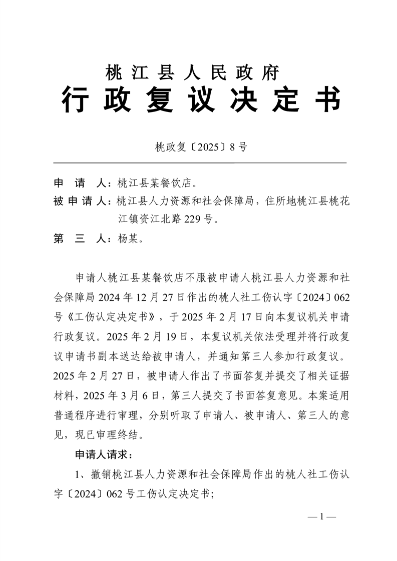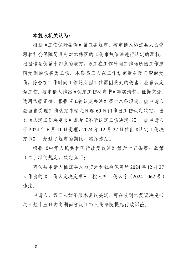 行 政 复 议 决 定 书桃政复〔2025〕8号