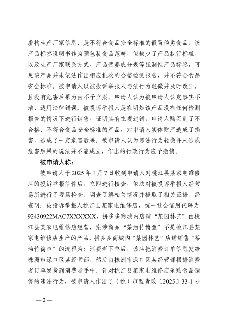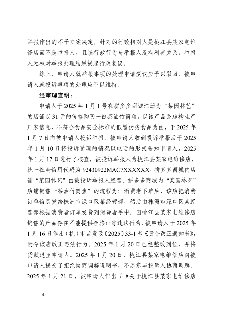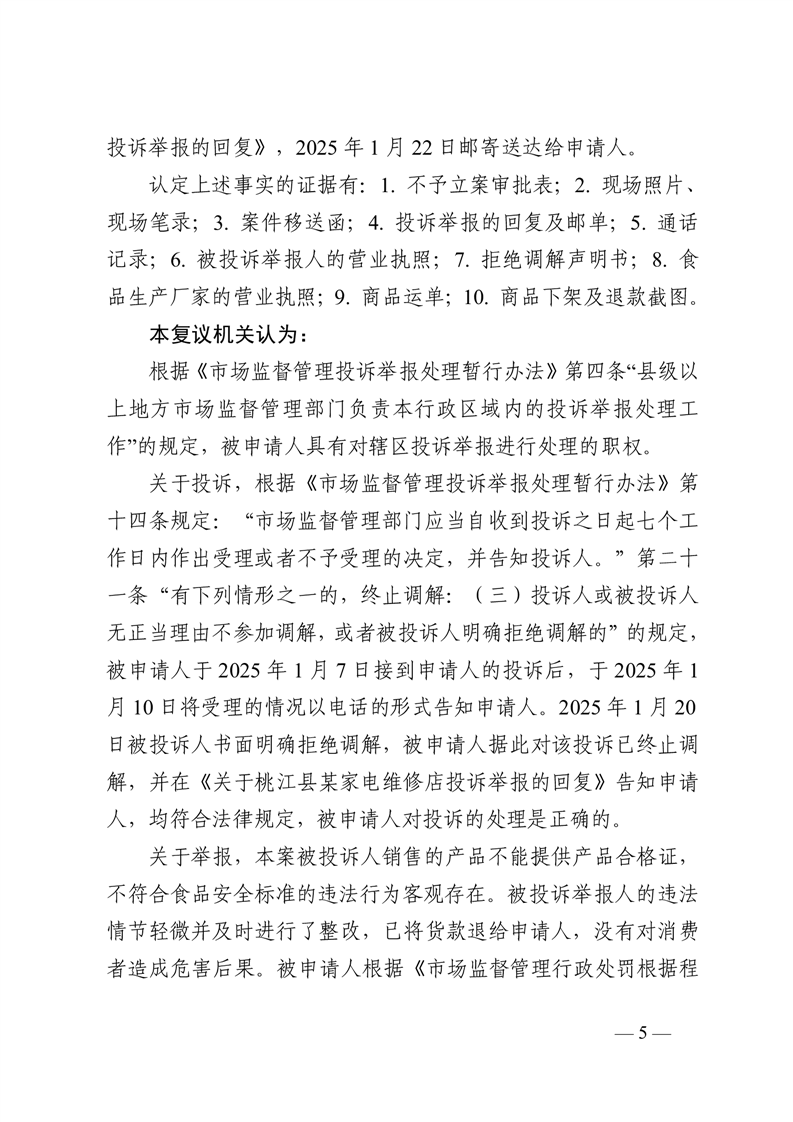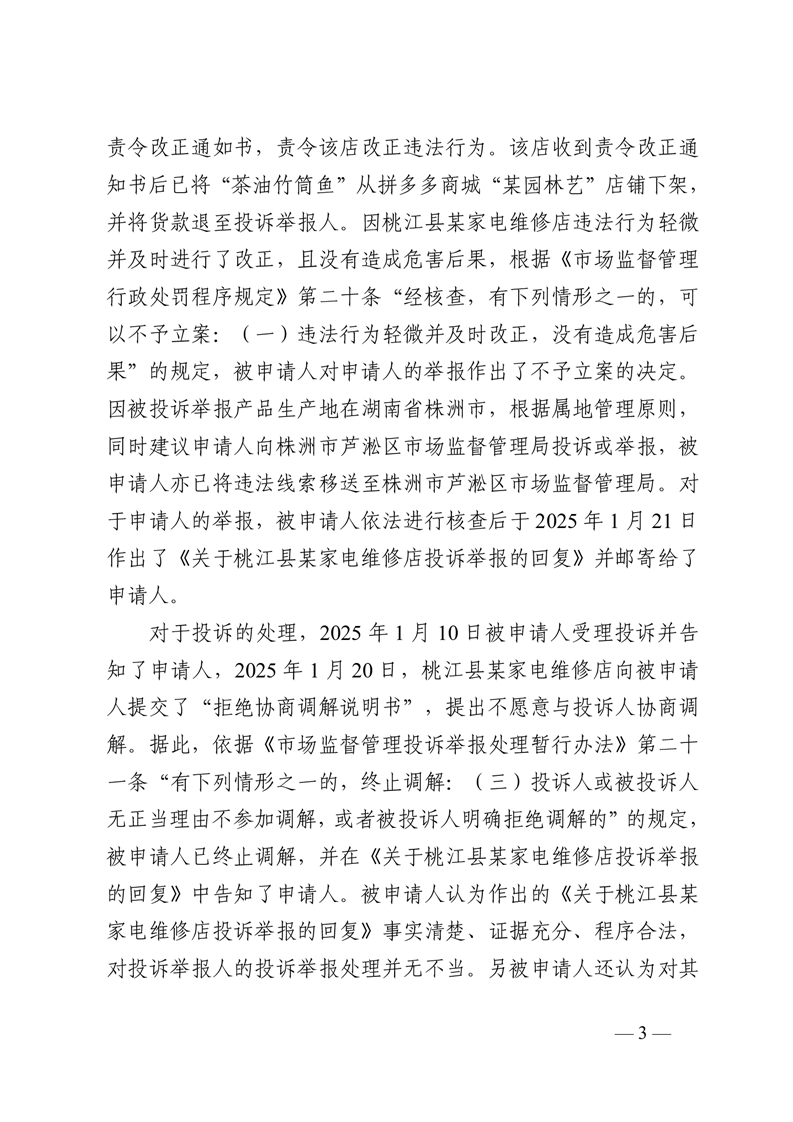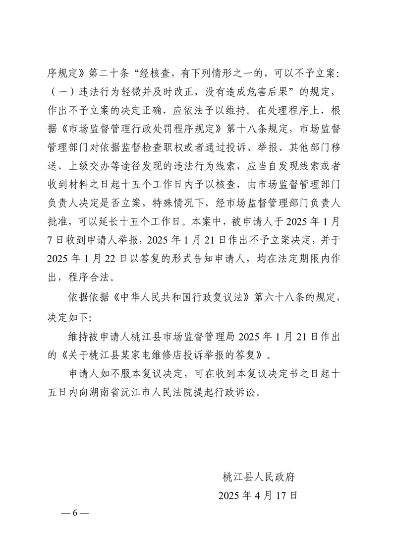 行 政 复 议 决 定 书桃政复〔2025〕10号