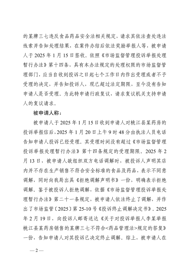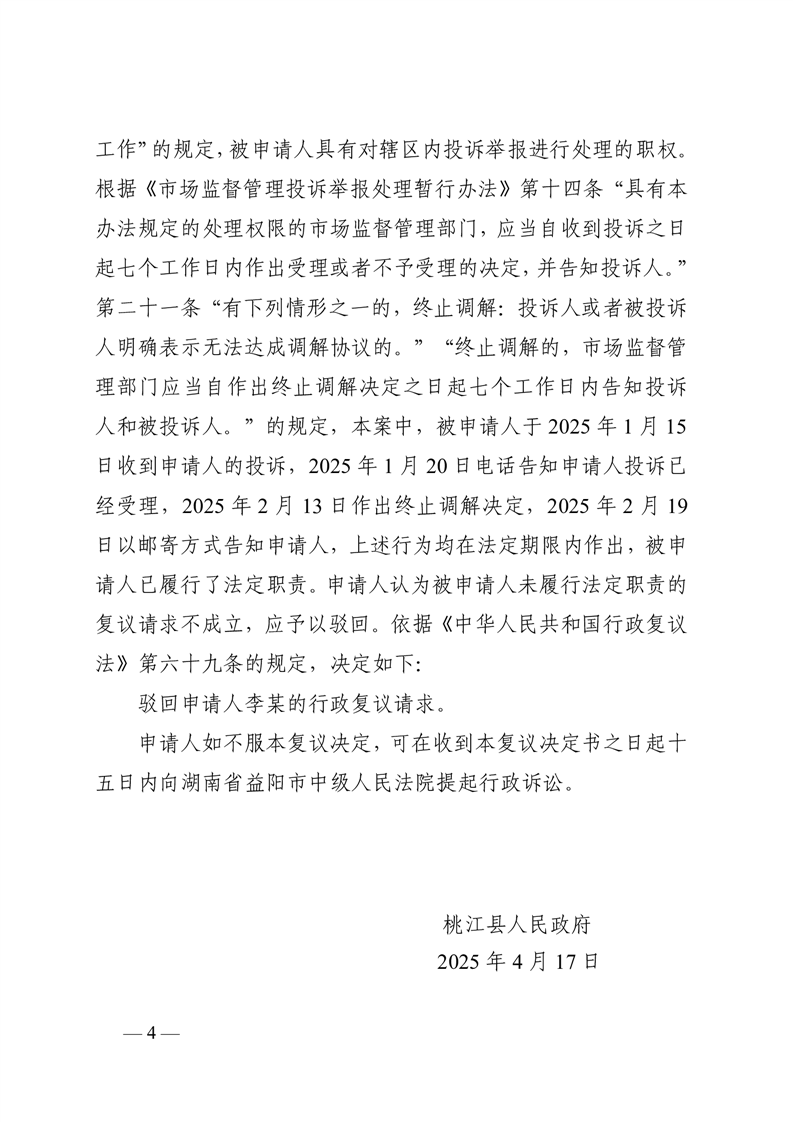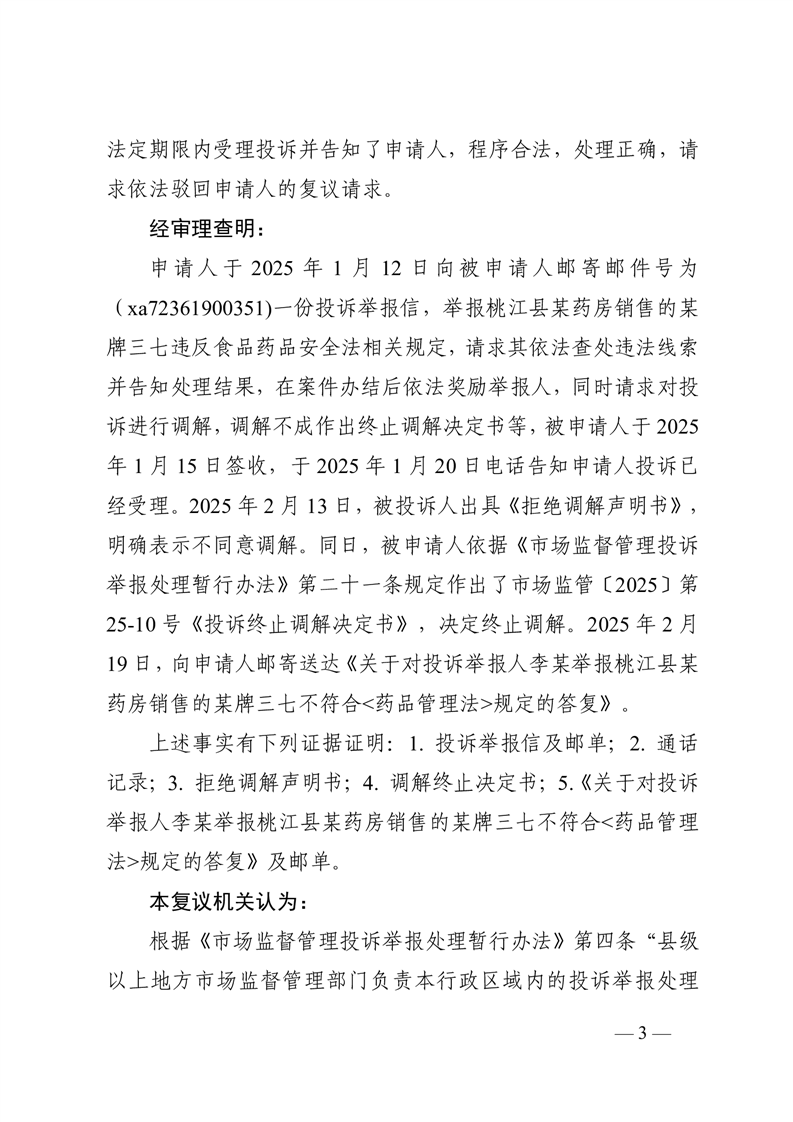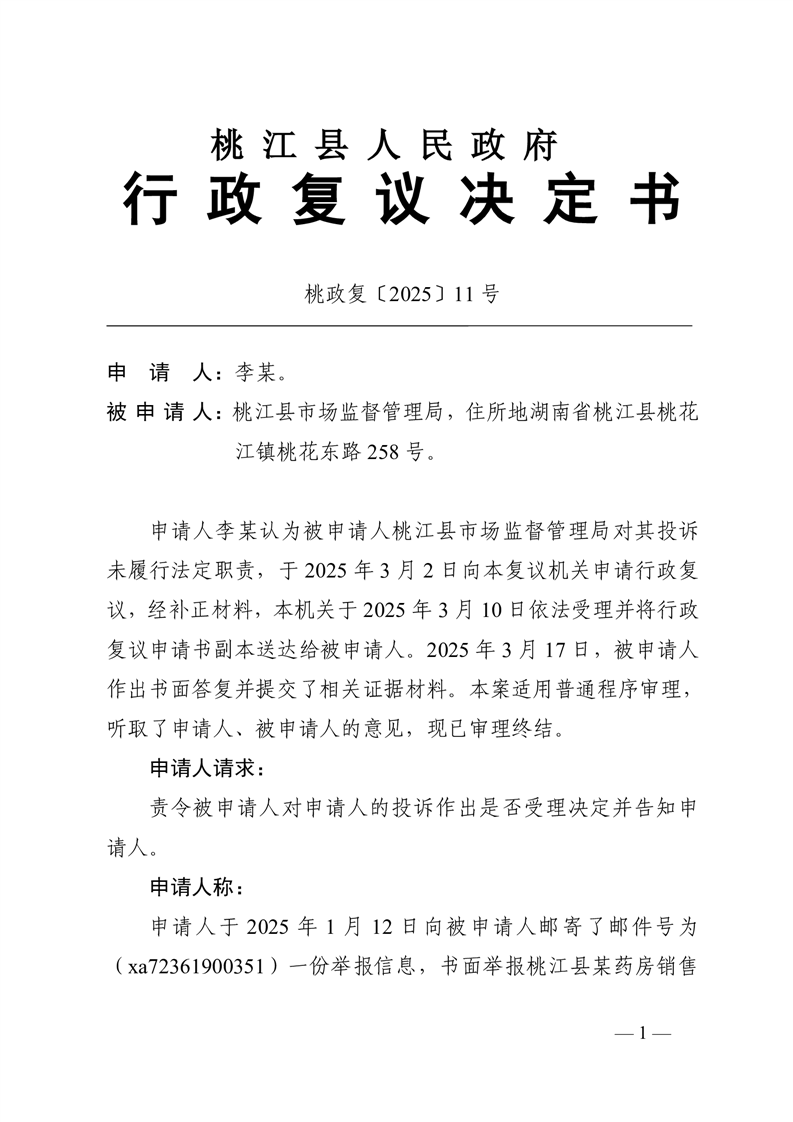 行 政 复 议 决 定 书桃政复〔2025〕11号