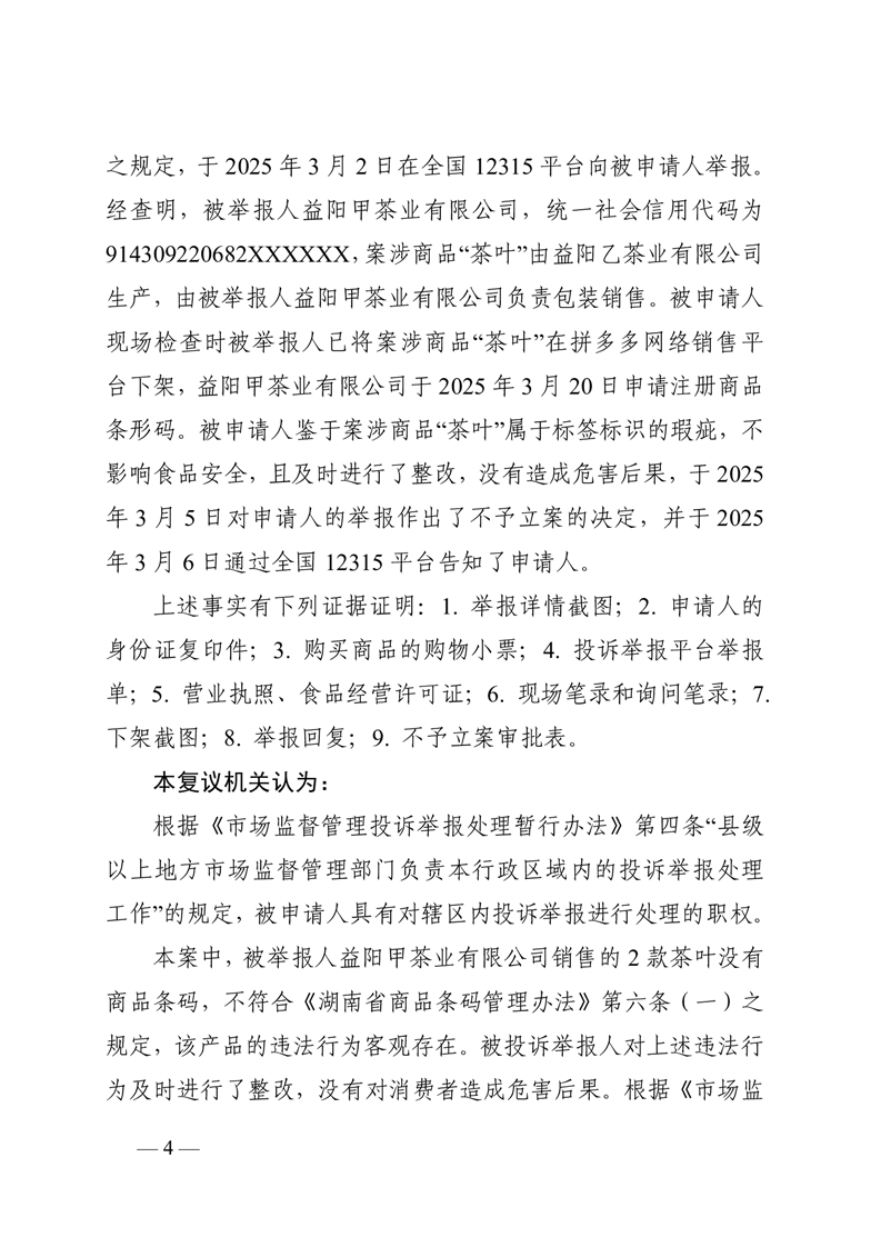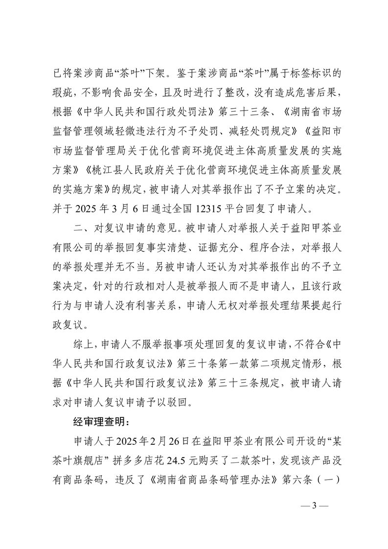 行 政 复 议 决 定 书桃政复〔2025〕19号