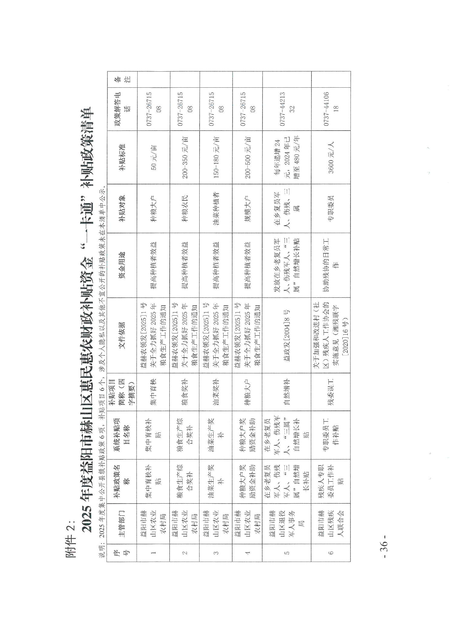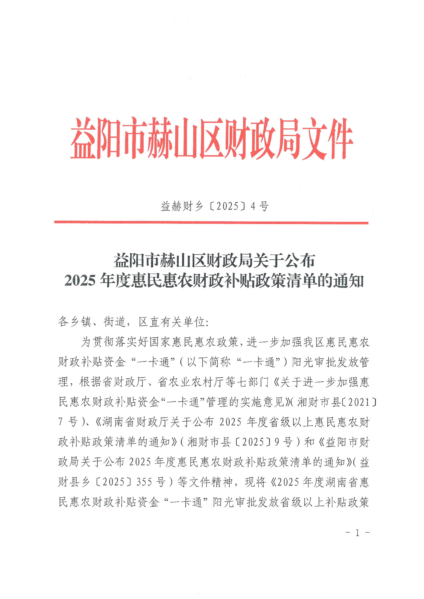 第4号乡 2025年度惠民惠农财政补贴政策清单的通知