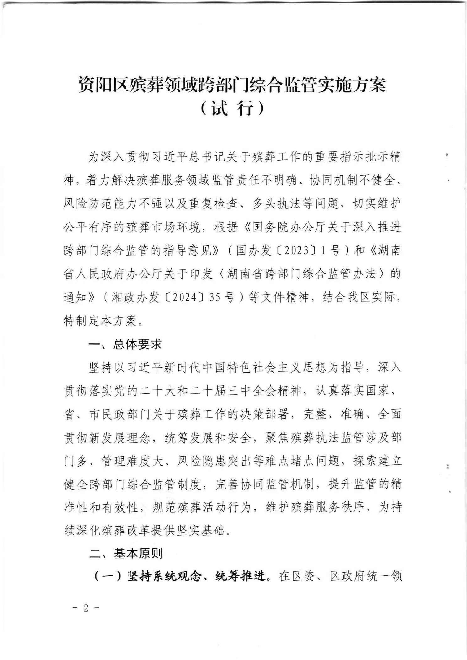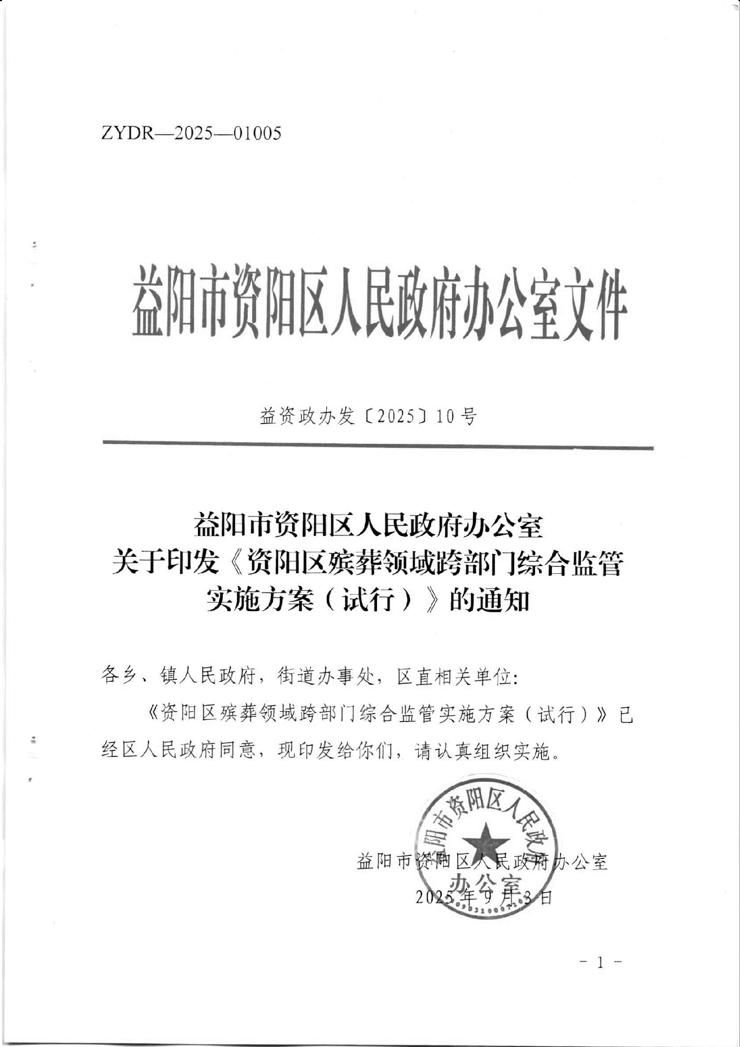 益阳市资阳区人民政府办公室关于印发《资阳区殡葬领域跨部门综合监管实施方案(试行)》的通知