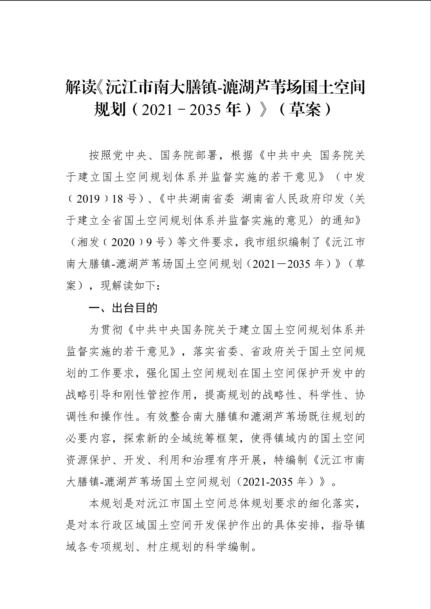沅江市南大膳镇-漉湖芦苇场国土空间规划(2021-2035年)公示