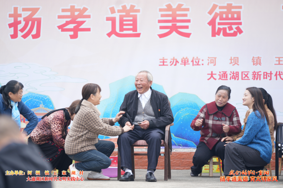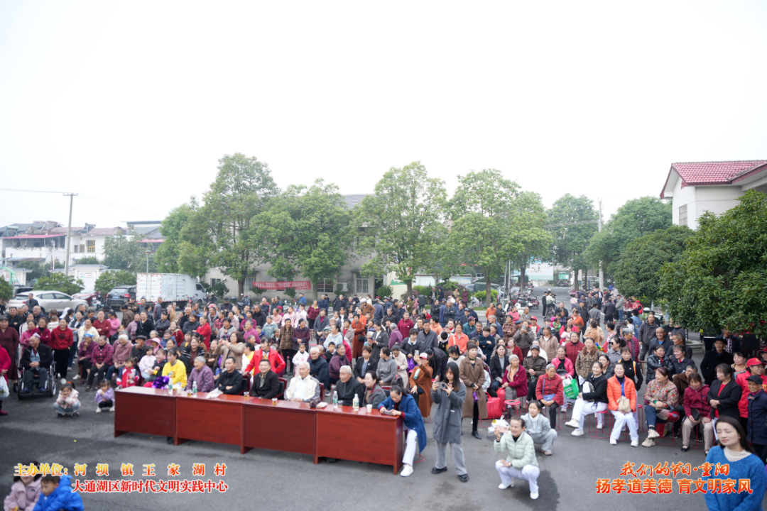 此次活动由河坝镇王家湖村、大通湖区新时代文明实践中心举办。活动以“扬孝道美德,育文明乡风”为主题,旨在弘扬孝道美德,树立文明新风,凝聚发展力量。