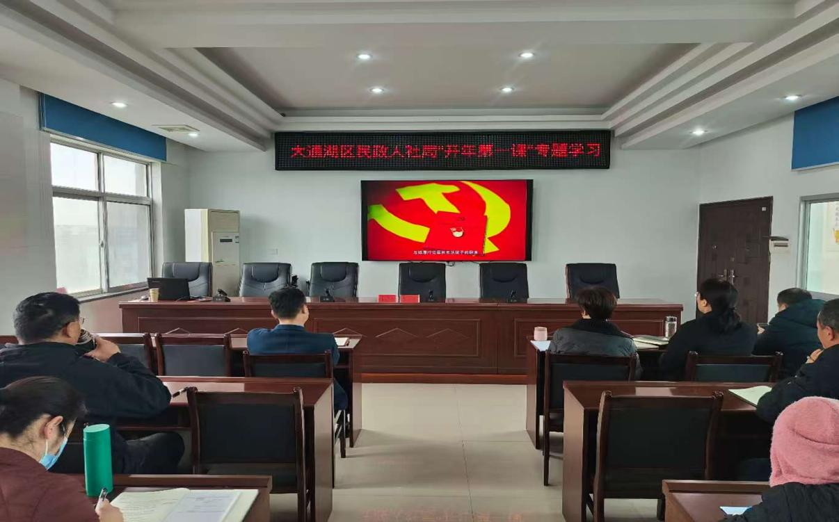 为进一步严明政治纪律和政治规矩,教育引导全体干部职工迅速收心归位,开启新年工作新篇章,2月27日下午,大通湖区民政人社局召开“开年第一课”专题学习会议。