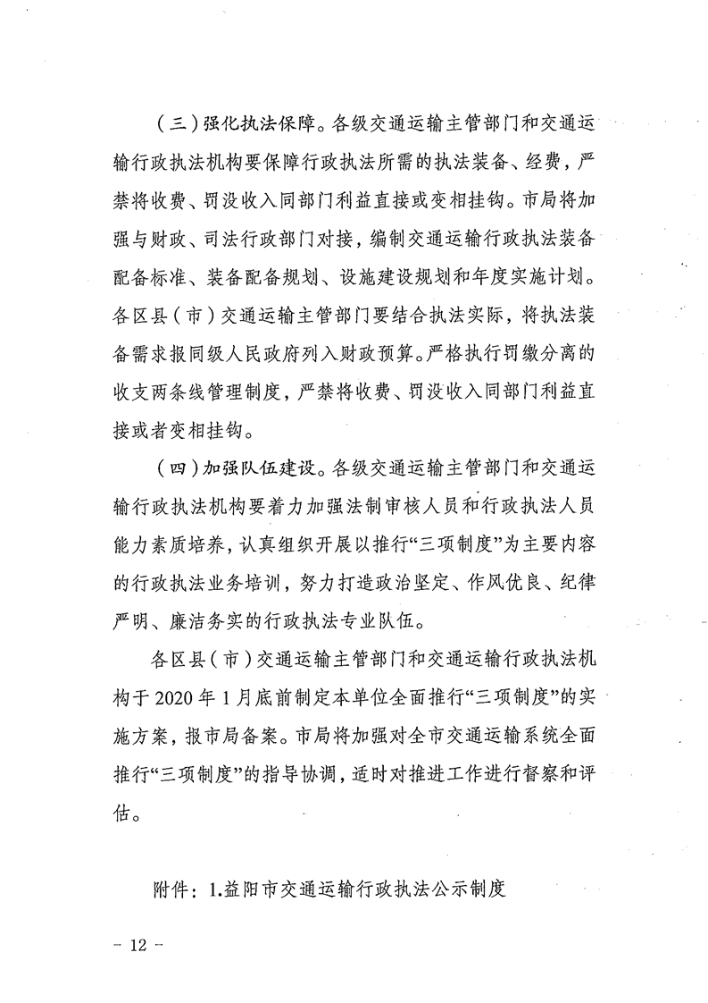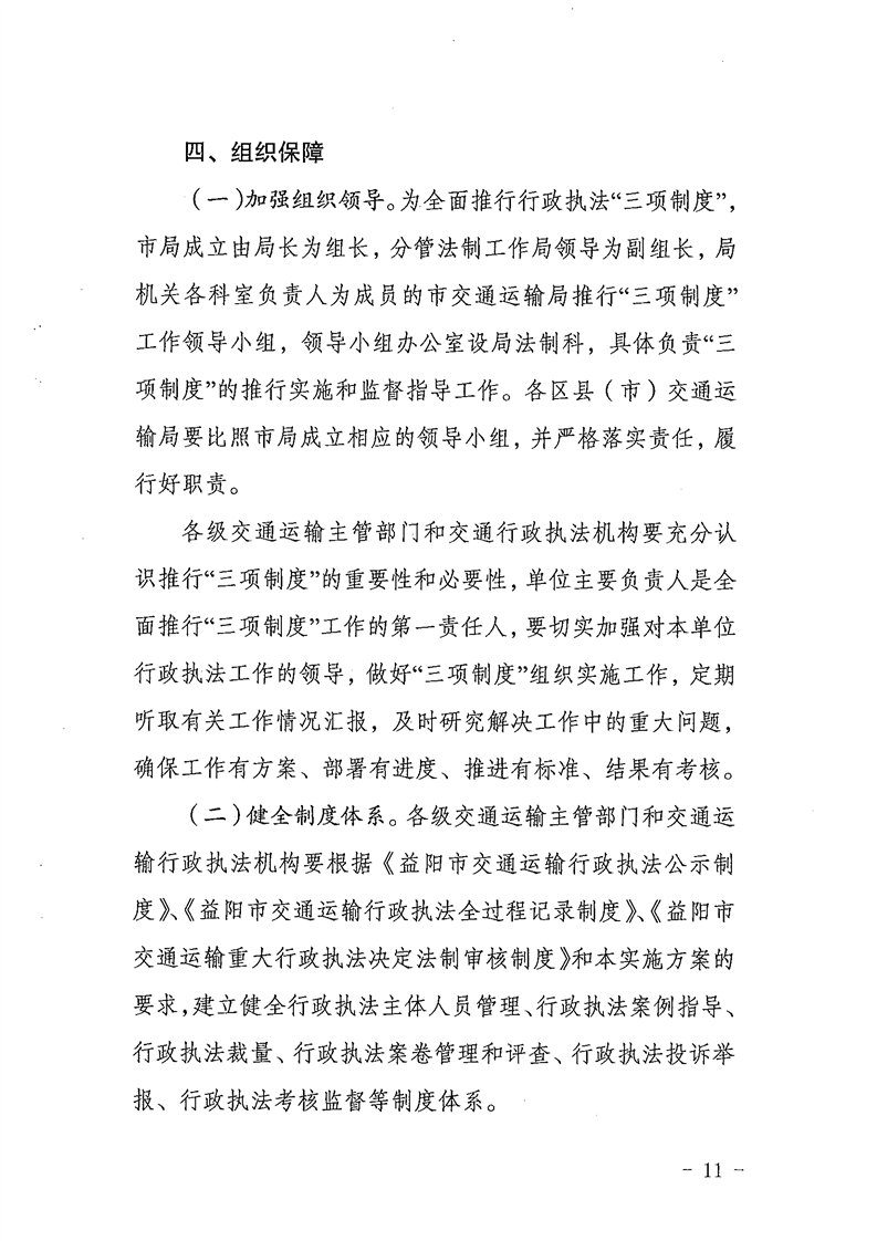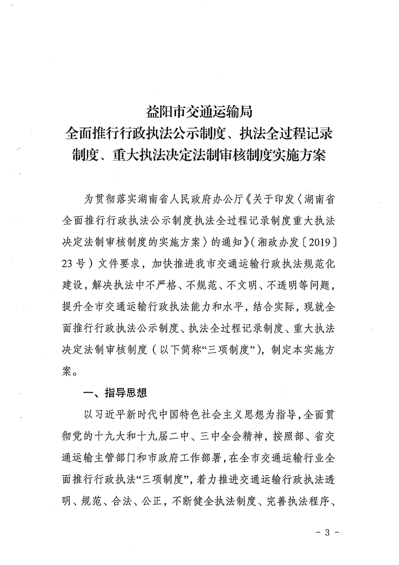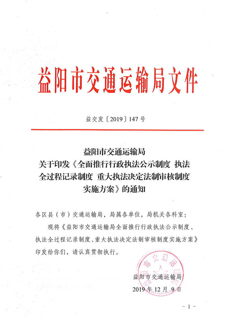 益阳市交通运输局全面推行行政执法公示制度、执法全过程记录制度、重大执法决定法制审核制度实施方案