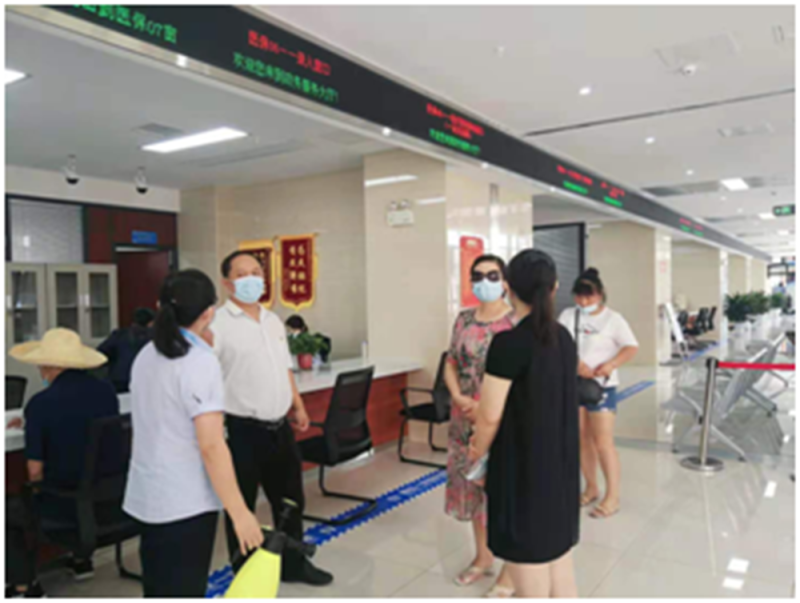 7月30日安化县医保局主要负责人深入医疗保障事务中心经办窗口督查疫情防控工作情况。