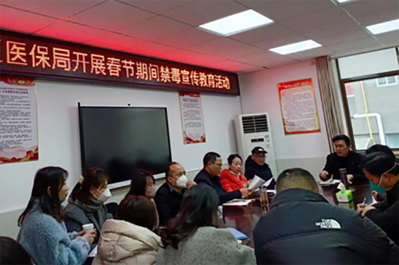 1月18日,赫山区医保局组织召开全体干部职工大会,深入开展春节期间禁毒宣传教育活动。