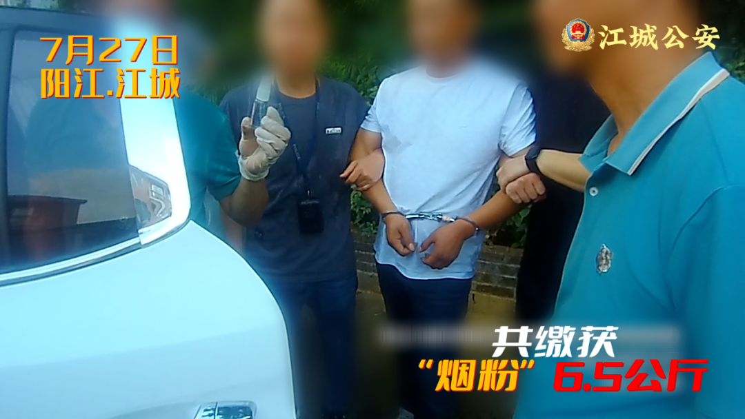 7月底,广东省阳江市公安局江城分局在工作中获悉一条涉“烟粉”线索,迅速组织警力开展侦查,掌握了犯罪嫌疑人从外省购买“烟粉”到阳江贩卖的信息。7月27日18时许,办案民警在城东街道抓获犯罪嫌疑人贺某和陈某,从涉案车辆搜出“烟粉”7包共6.5公斤。