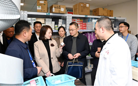 调研组来到桃江县人民医院进行实地调研,通过听取介绍、观摩操作演示、与医务人员深入交流等方式,全面了解药品追溯信息采集系统运行、智能配药设备应用及药品全流程监管等情况,并对医院在药品精细化管理方面的创新实践给予充分肯定。