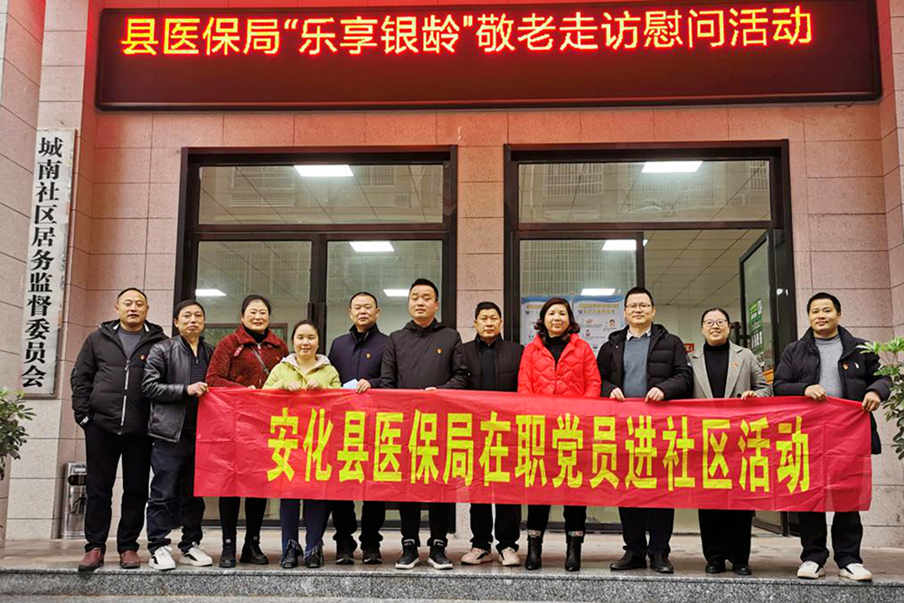 近日,安化县医疗保障局率机关支部部分党员代表,走进安化县城南社区开展在职党员进社区走访慰问活动,为高龄、失能失智、重病等老年人家庭,送去党和政府的温暖和关怀。
