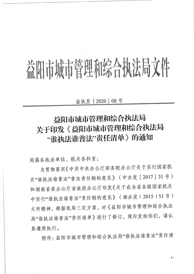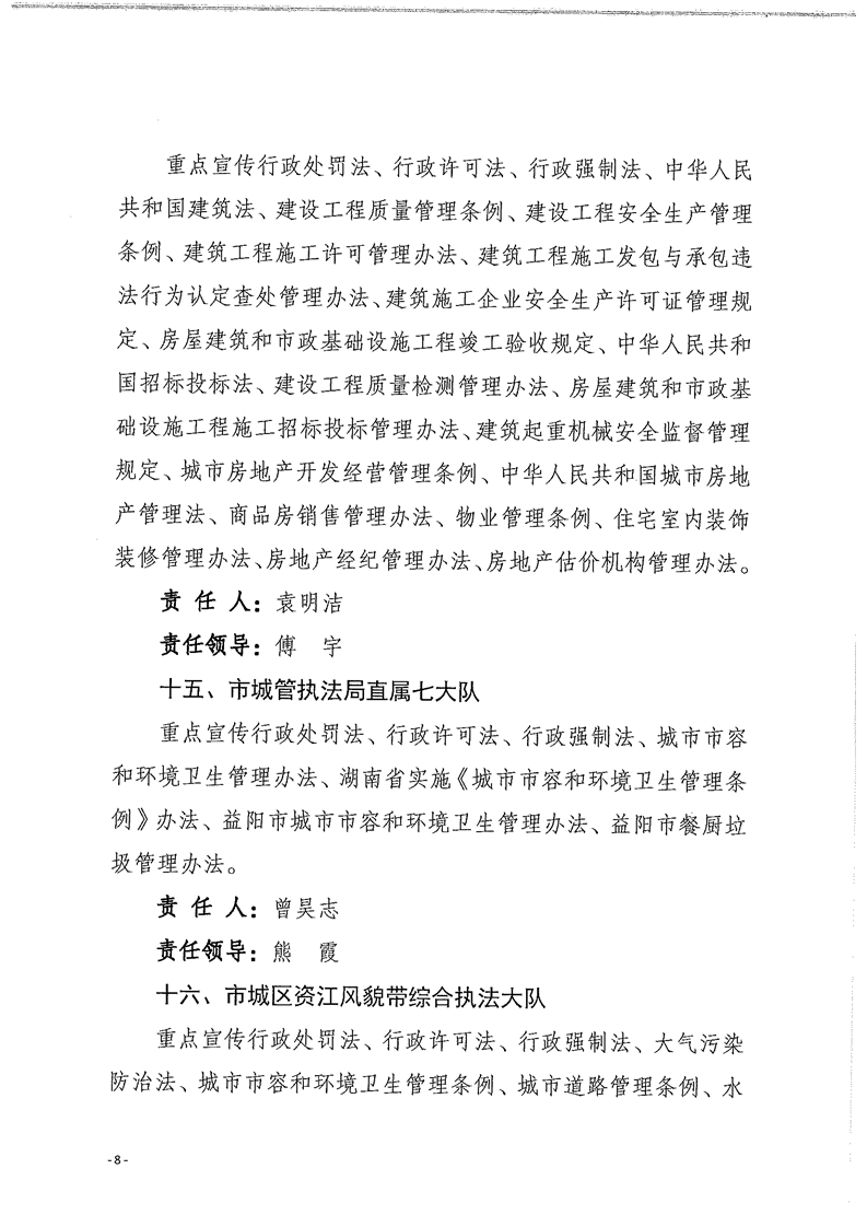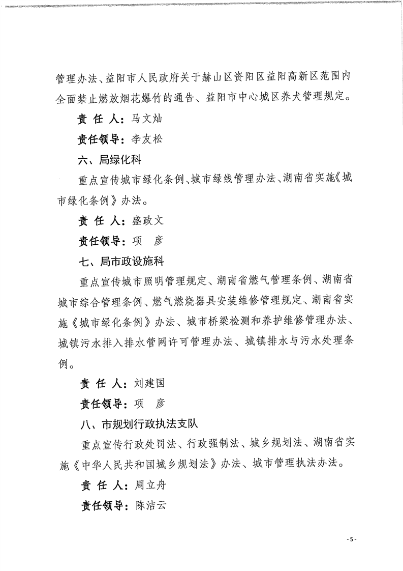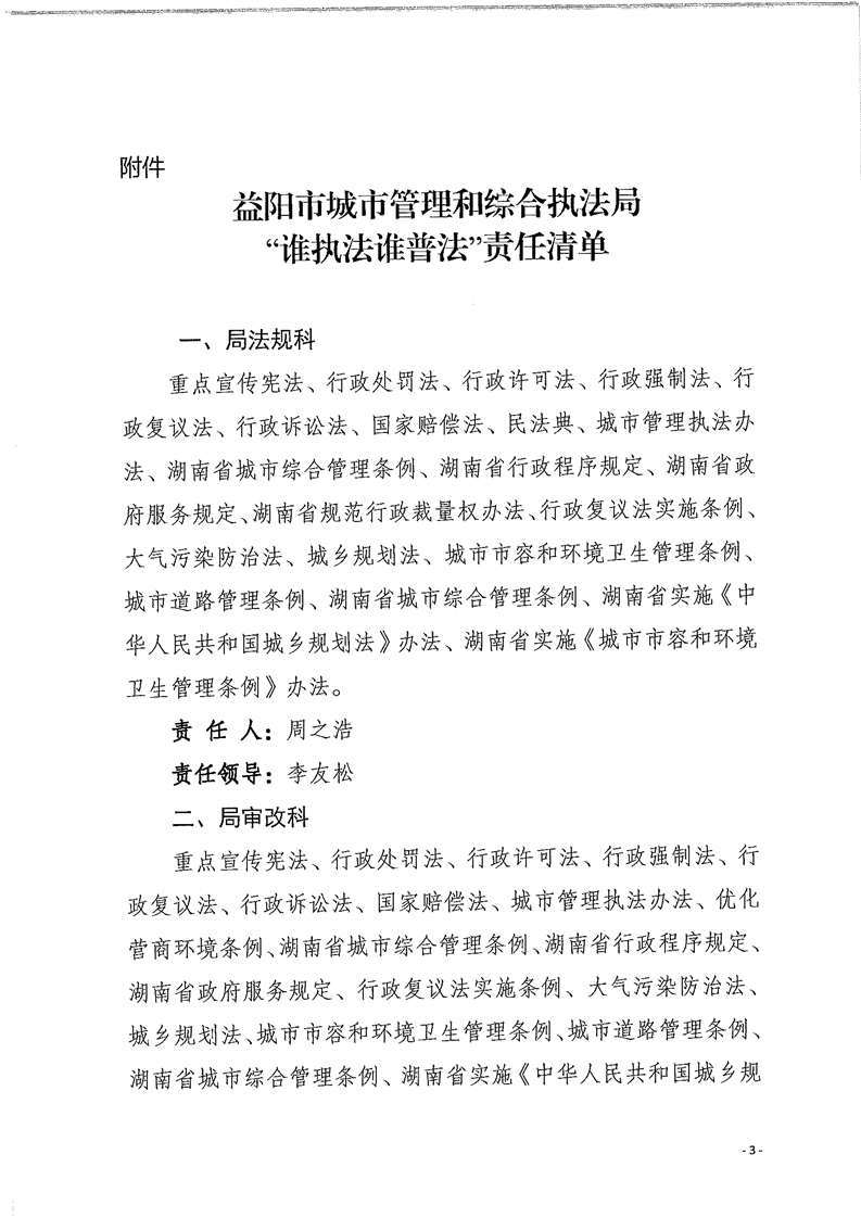 益阳市城市管理和综合执法局“谁执法谁普法”责任清单(2020年)