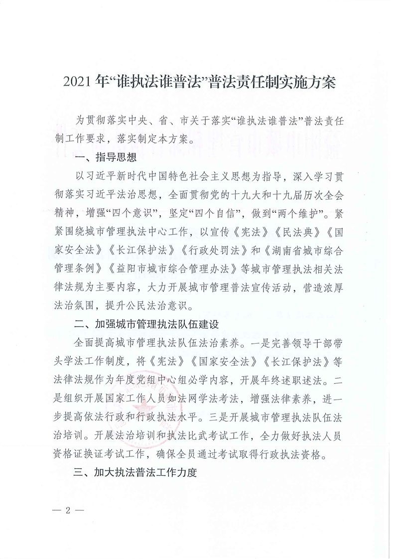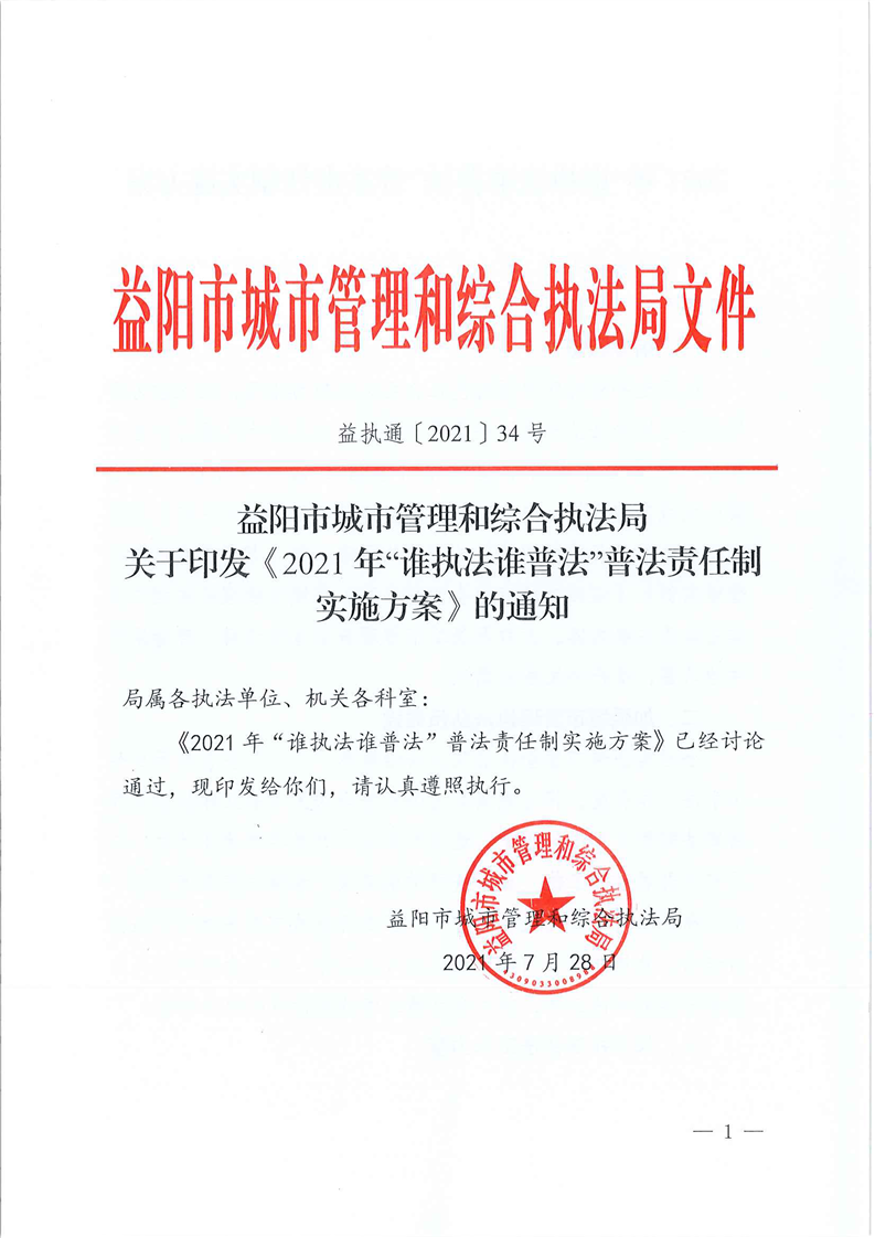 2021年“谁执法谁普法”普法责任制实施方案