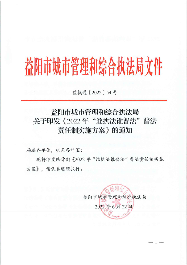 关于印发《2022年“谁执法谁普法”普法责任制实施方案》的通知