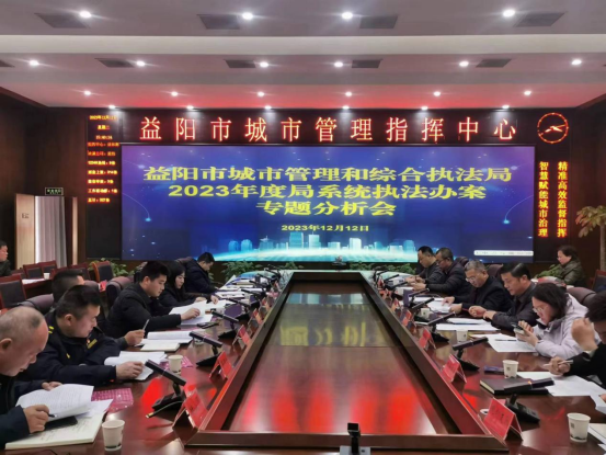 12月12日,益阳市城管执法局组织召开2023年度执法办案专题分析会,市城管执法局党组书记、局长张靖华主持,各县市区城管部门、局属各执法单位主要负责人参加会议。