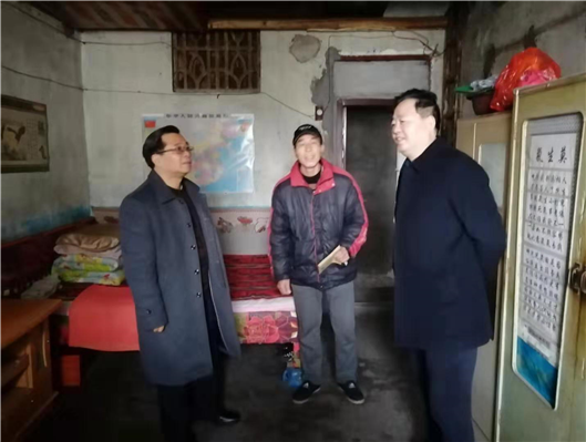 在困难职工李伯勋家,陈佑才与他亲切交谈,详细了解家里置办的年货、保暖衣被添置等情况,询问生活情况和健康状况,温馨提醒气温低时注意保暖和外出活动安全。